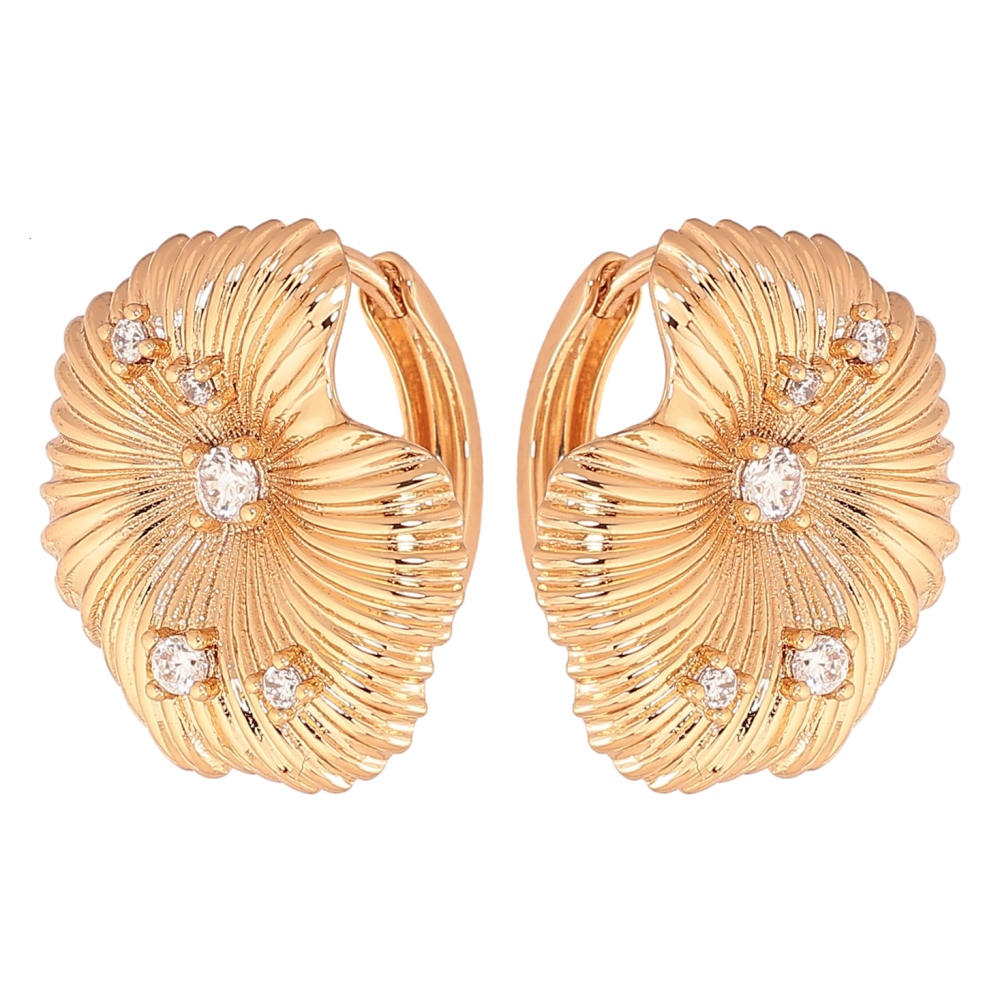 Серьги Xuping цвет позолота 18К колечки цветочки с кристаллами