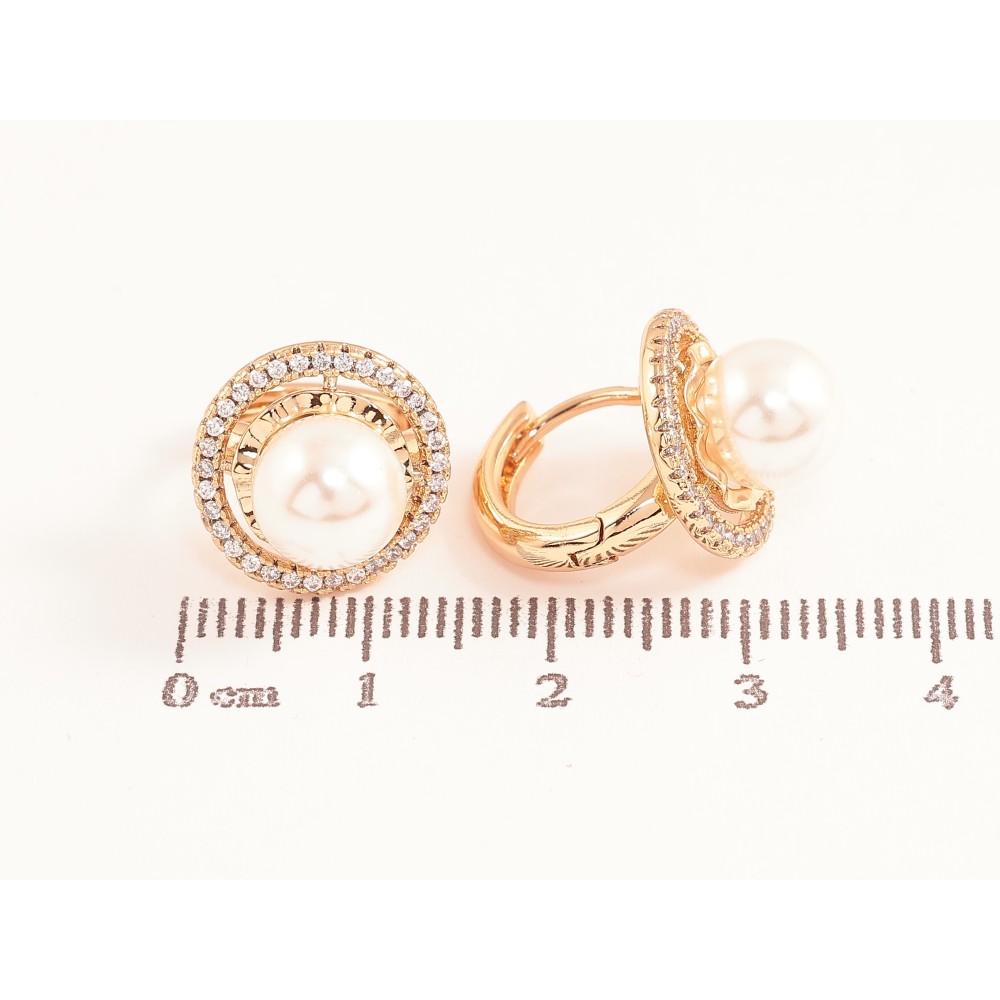 Серьги Xuping цвет позолота 18К колечки жемчужины в обрамлении кристаллов