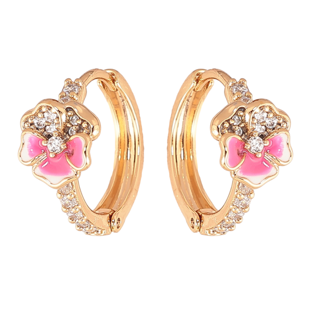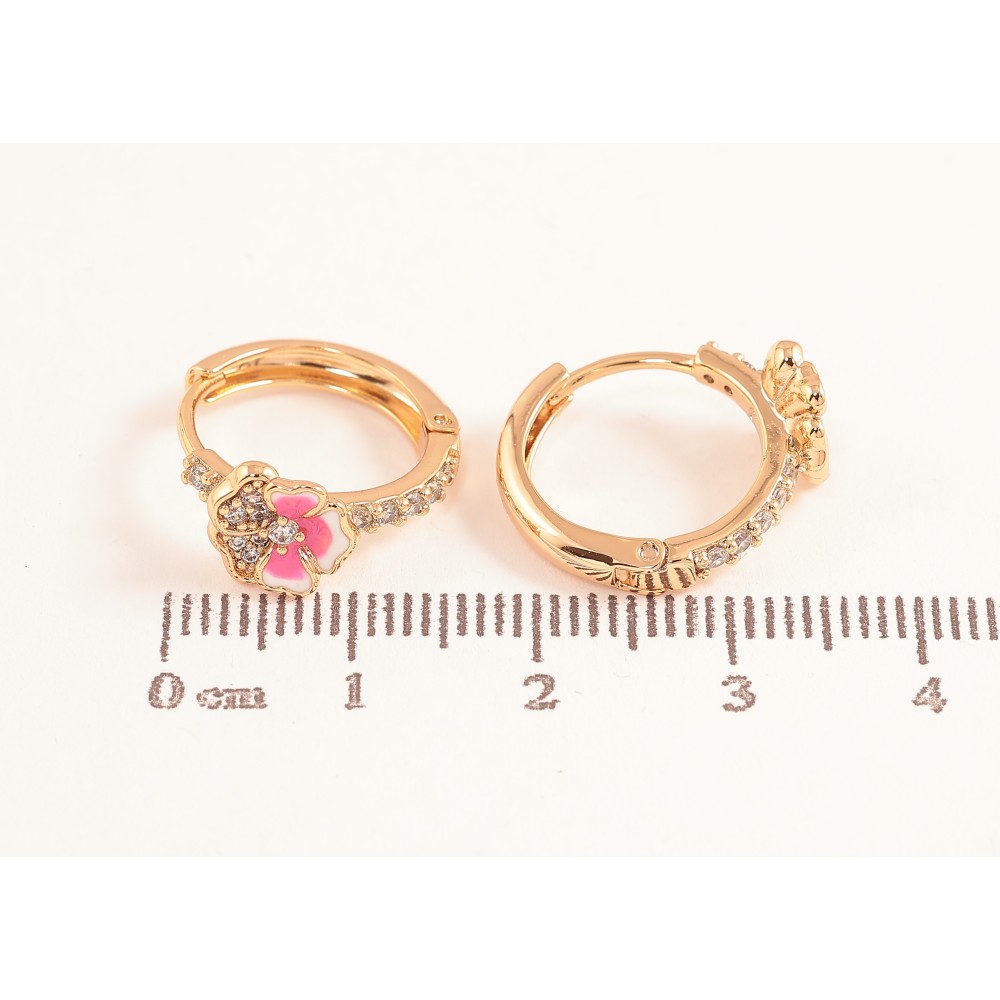 Серьги Xuping цвет позолота 18К колечки розовые цветочки с эмалью и кристаллами