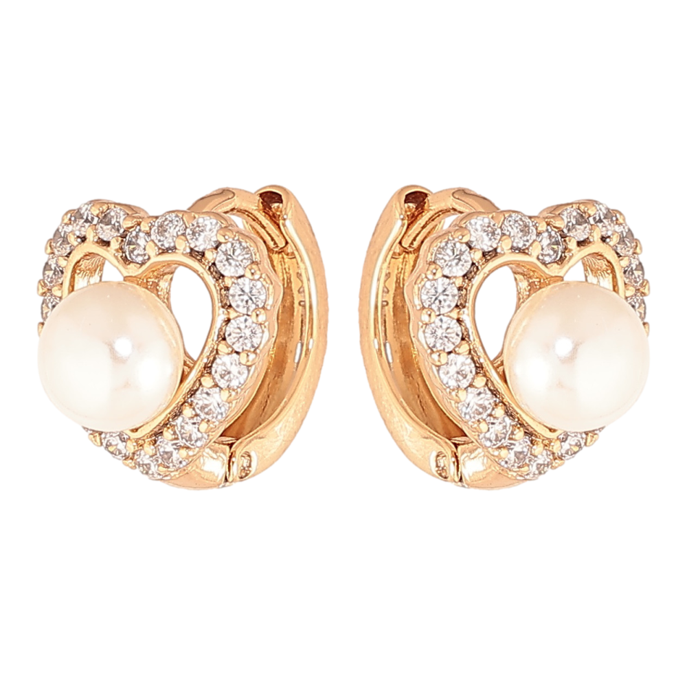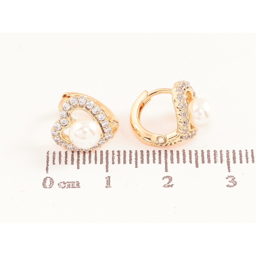 Серьги Xuping цвет позолота 18К колечки сердечки с кристаллами и жемчужинами
