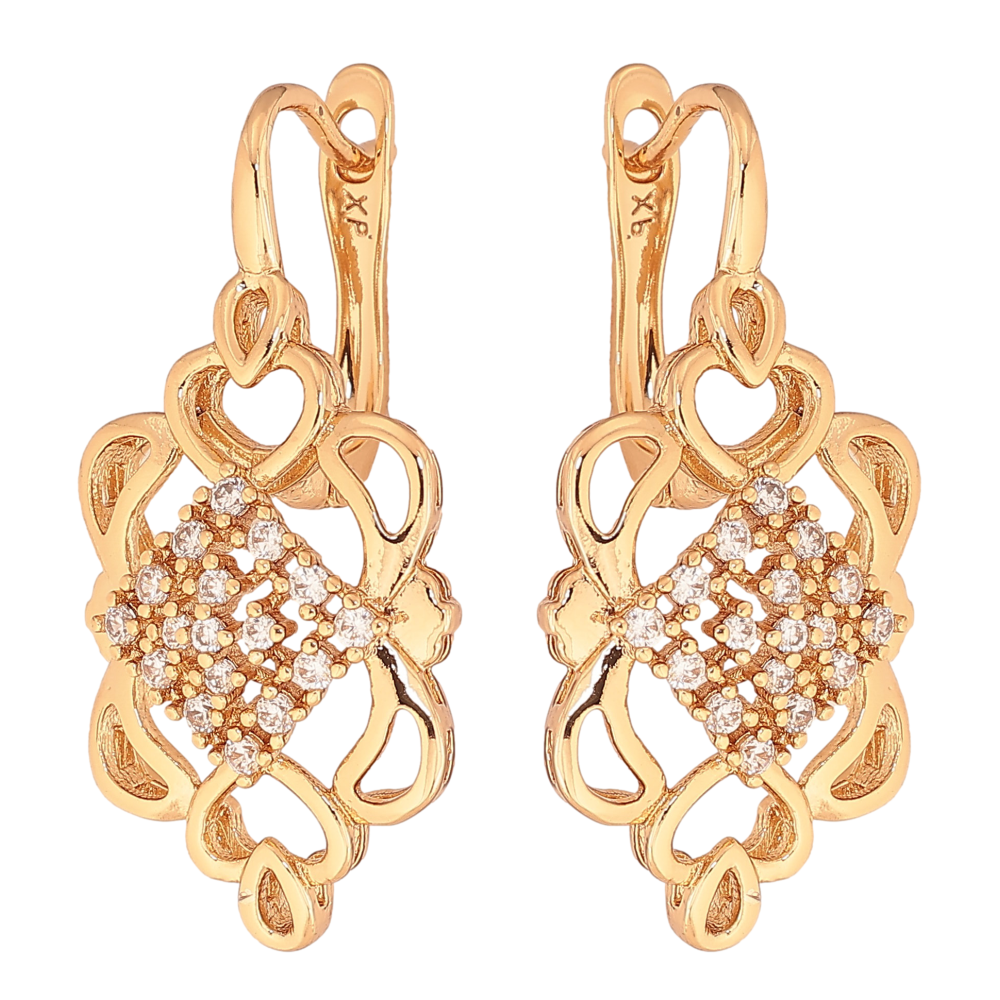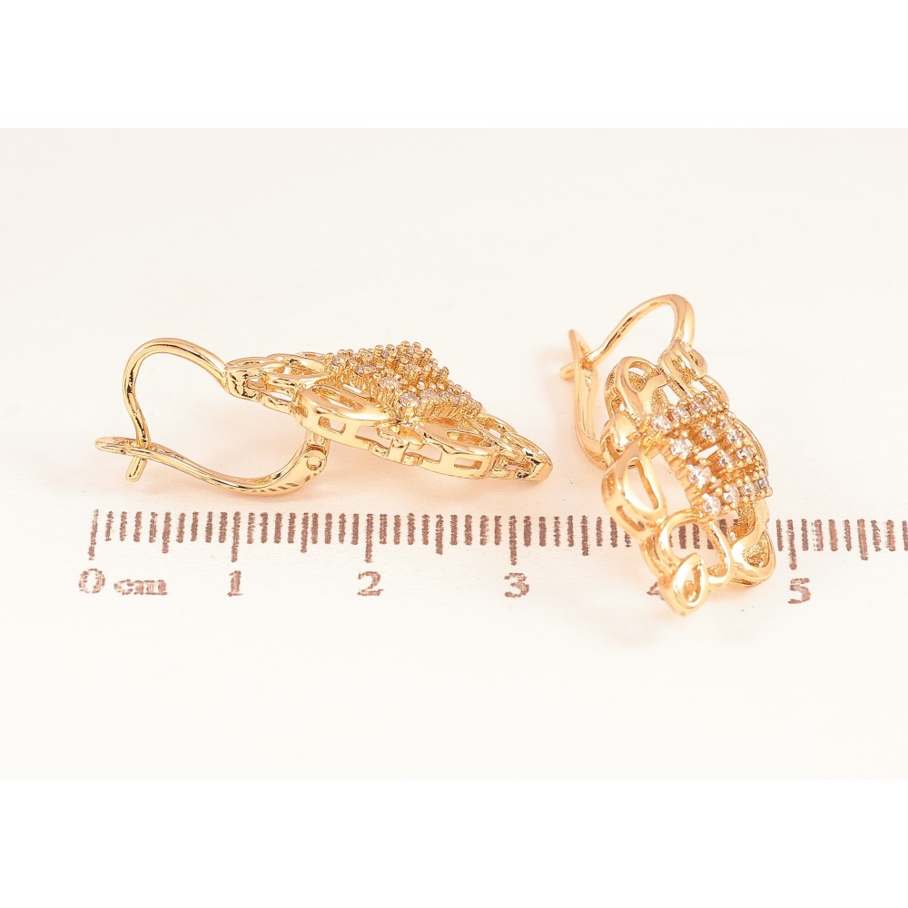 Серьги Xuping цвет Позолота 18К английський замок "Вензельный узор с кристаллами"