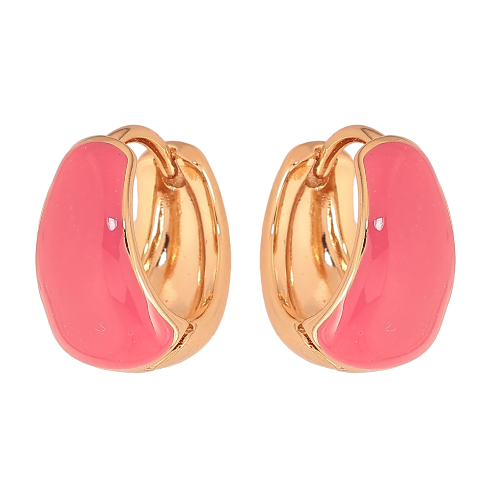 Серьги Xuping цвет Позолота 18К колечки "Узор розовой эмалью"
