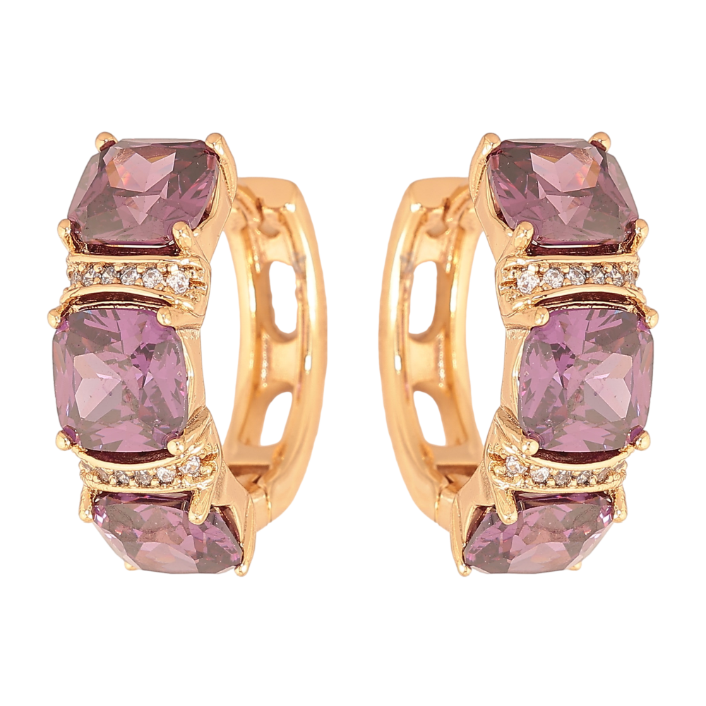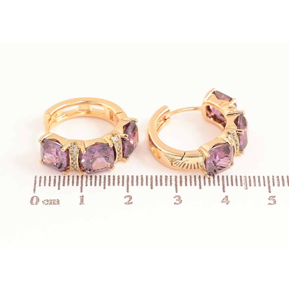 Серьги Xuping цвет Позолота 18К колечки "Узор с сиреневыми кристаллами"