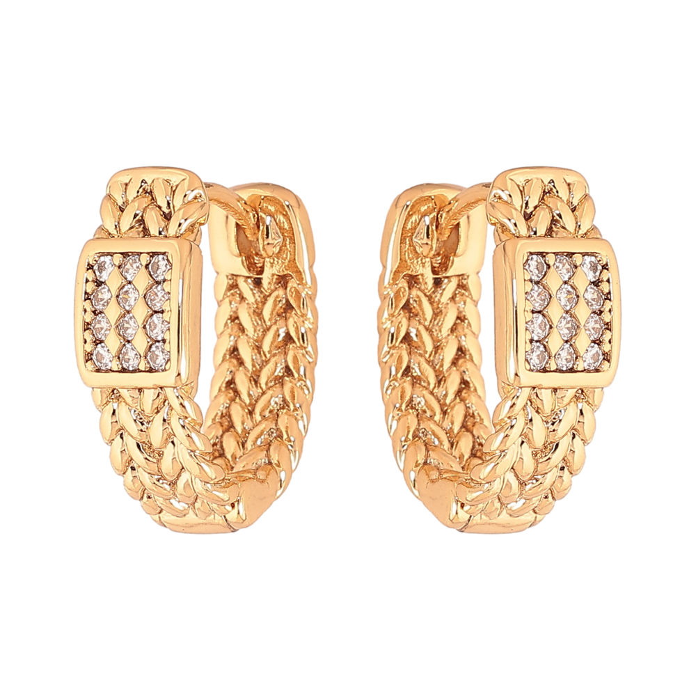 Серьги Xuping цвет Позолота 18К колечки "Узор с кристаллами" фото №1