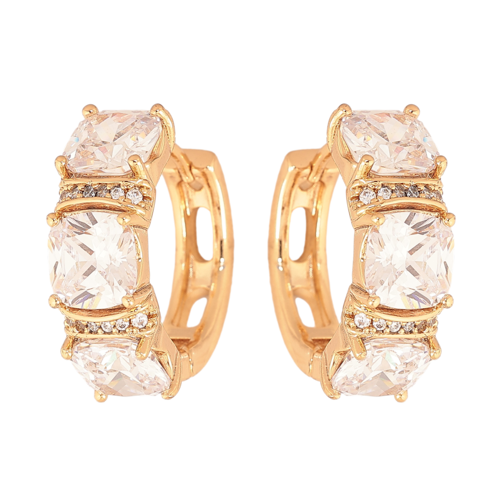 Серьги Xuping цвет Позолота 18К колечки "Узор с кристаллами" фото №1