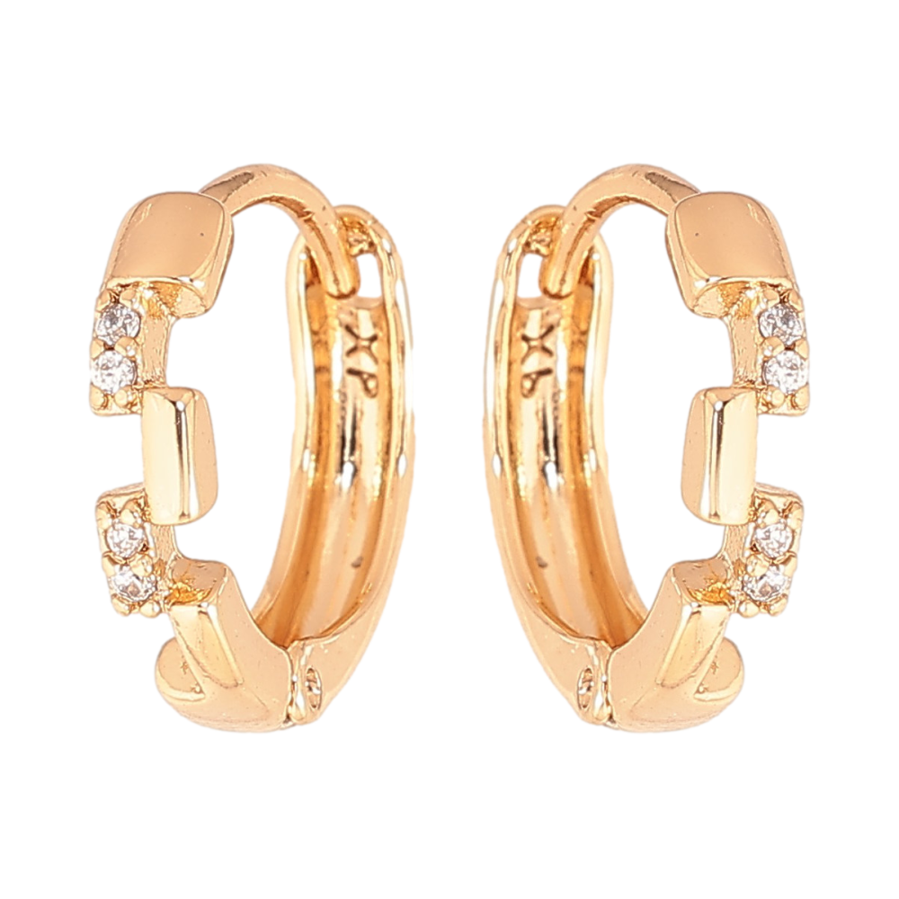 Серьги Xuping цвет Позолота 18К колечки "Узор с кристаллами" фото №1