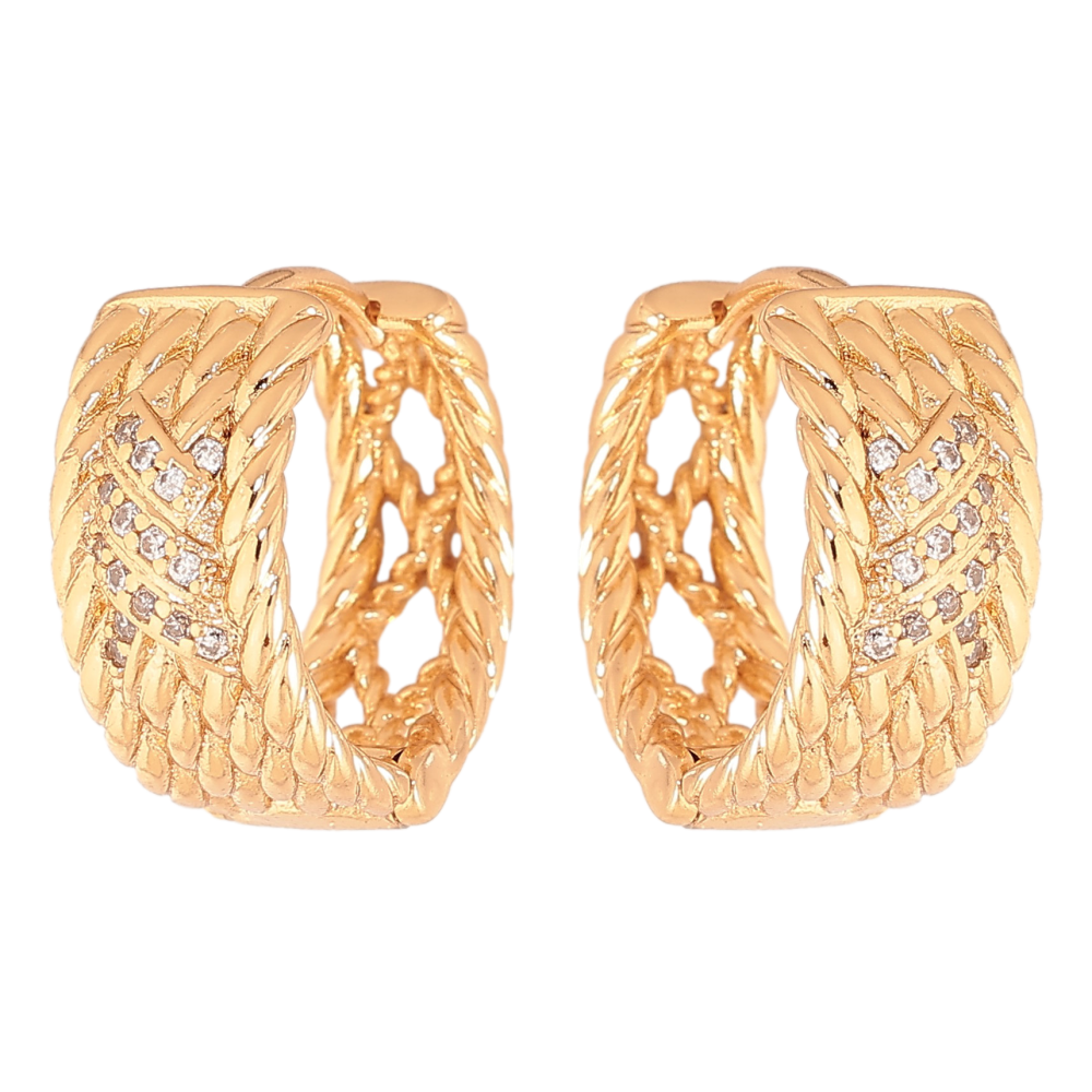 Серьги Xuping цвет Позолота 18К колечки "Узор с кристаллами" фото №1