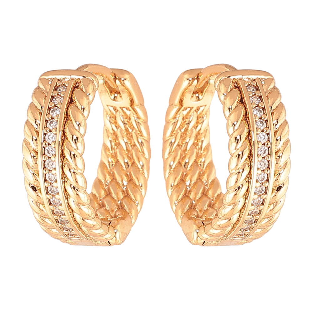 Серьги Xuping цвет Позолота 18K колечки "Узор с кристаллами"  фото №1