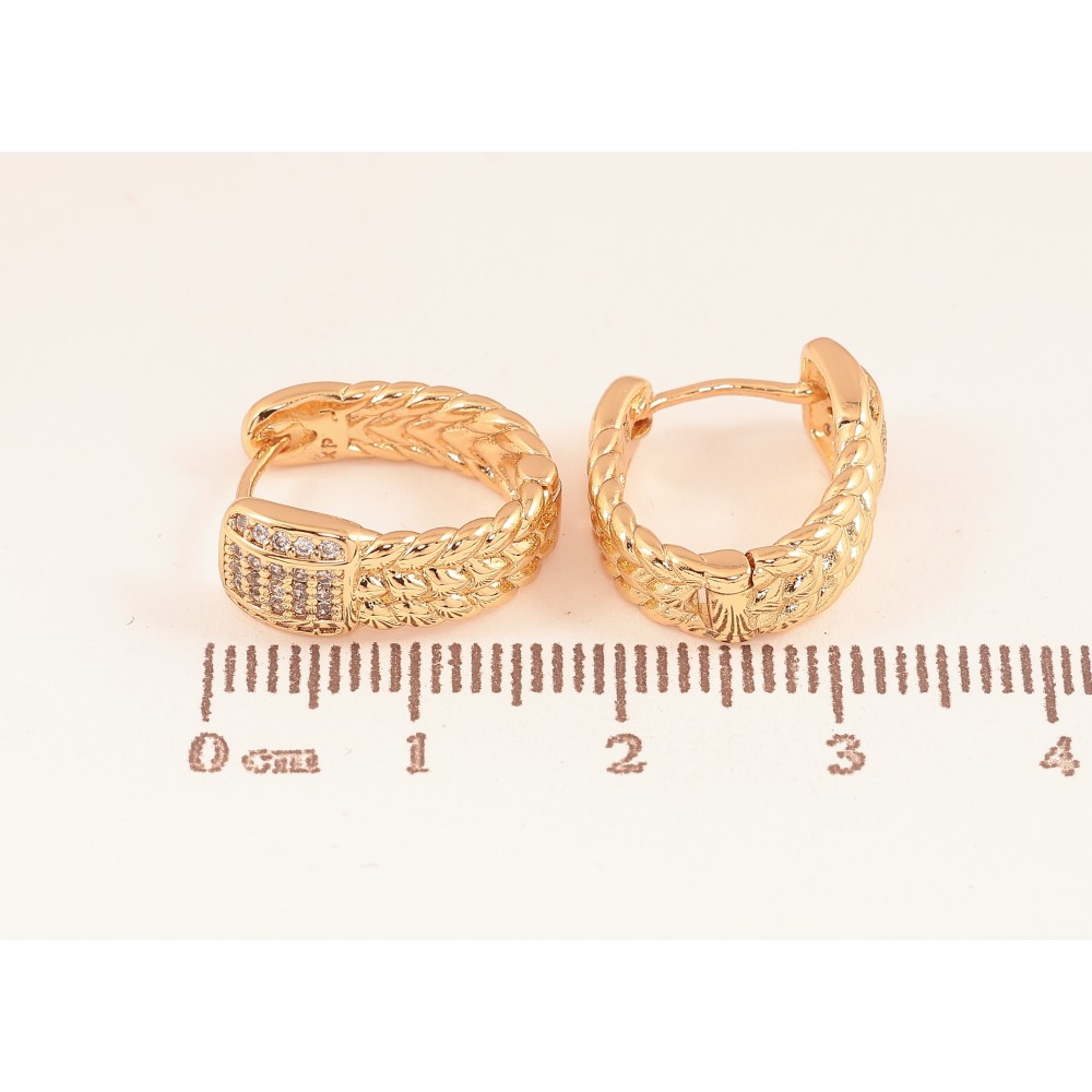 Серьги Xuping цвет Позолота 18К колечки "Узор с кристаллами" фото №1