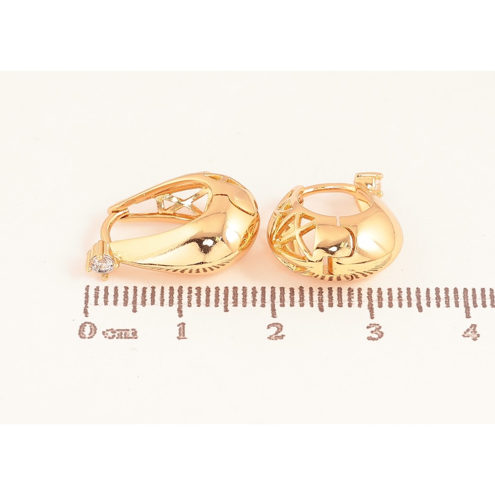 Серьги Xuping цвет Позолота 18К колечки "Узор с кристаллами" фото №1