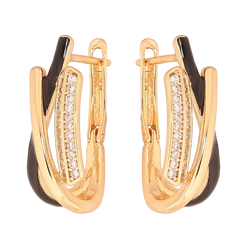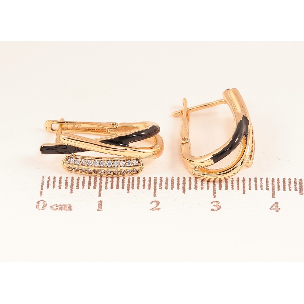 Серьги Xuping цвет Позолота 18К английський замок "Узор с кристаллами и черной эмалью"