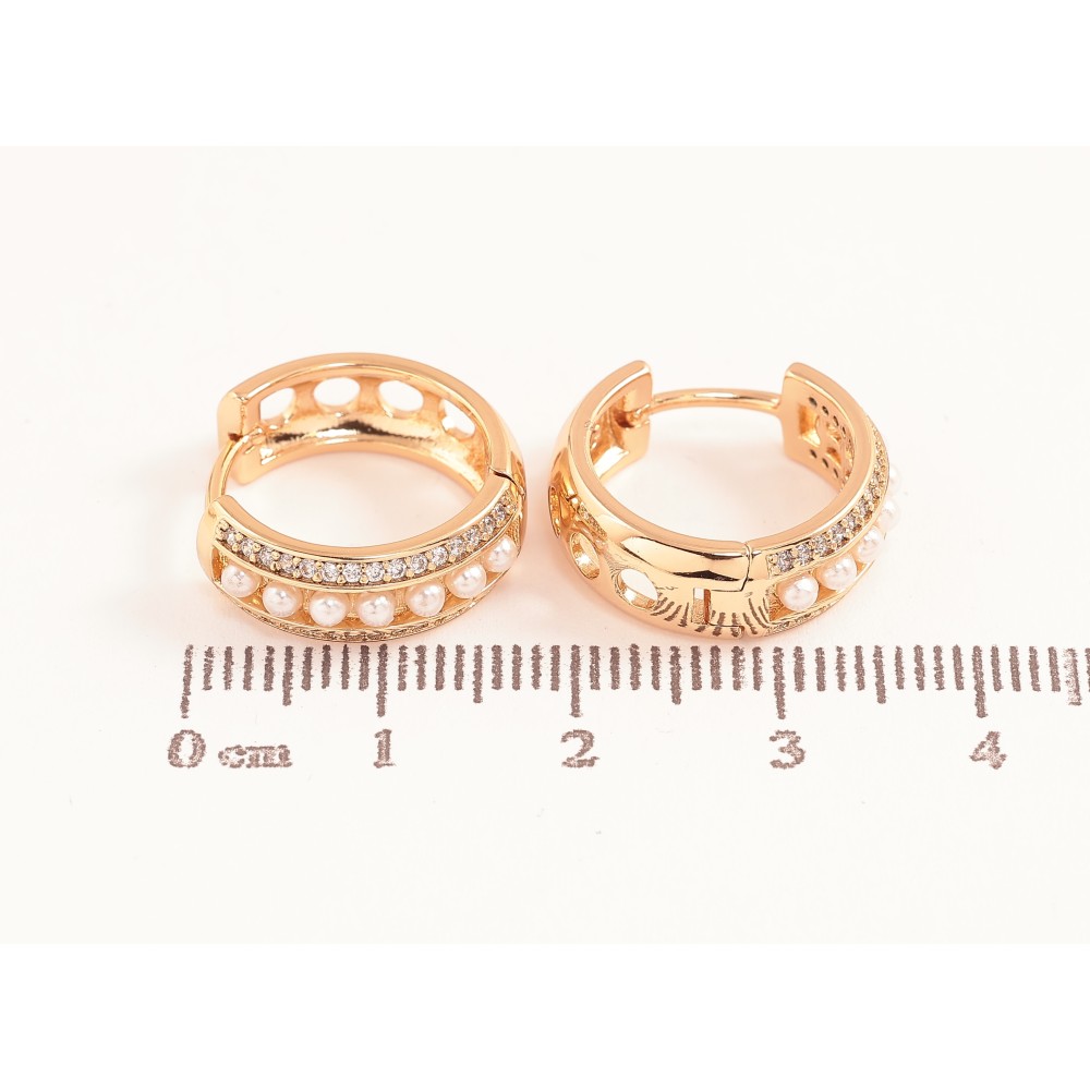 Серьги Xuping цвет позолота 18К колечки узор с кристаллами и жемчужинами фото №1