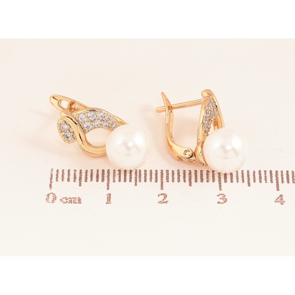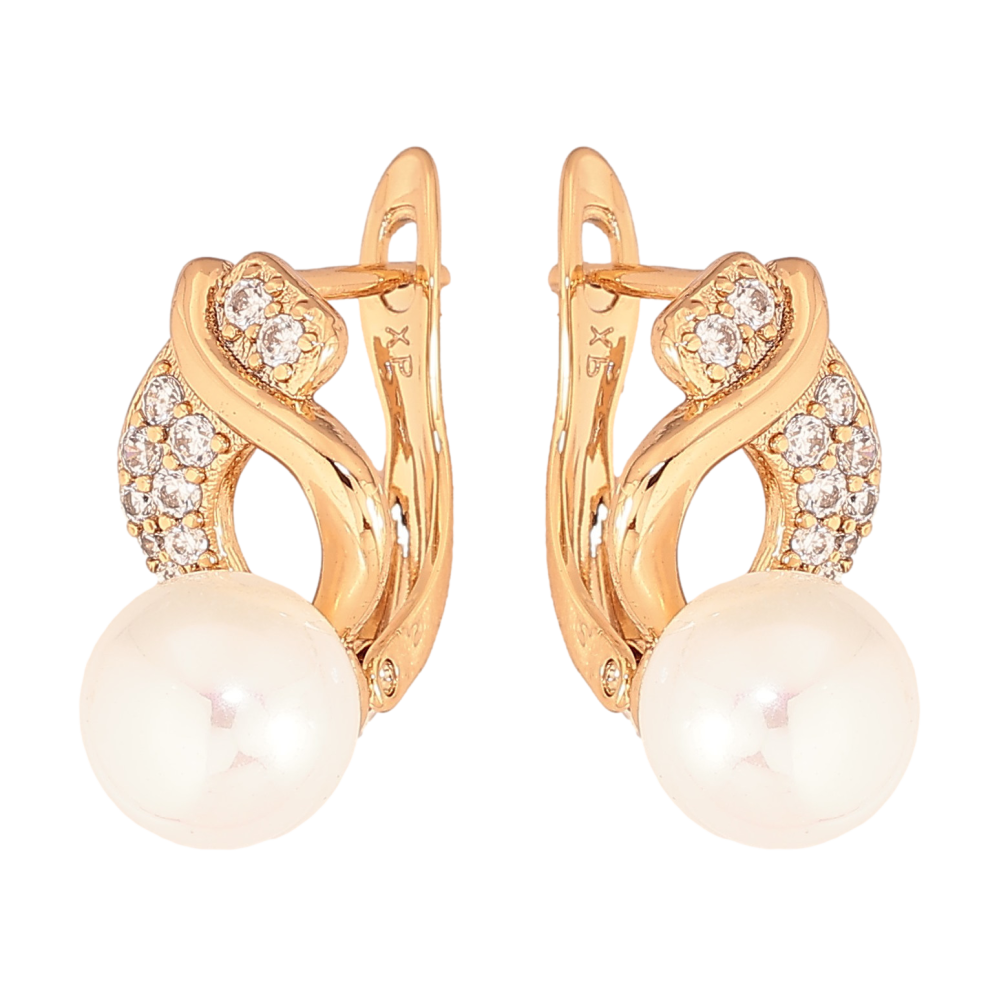 Серьги Xuping цвет Позолота 18К английський замок "Узор с жемчужинами и кристаллами"