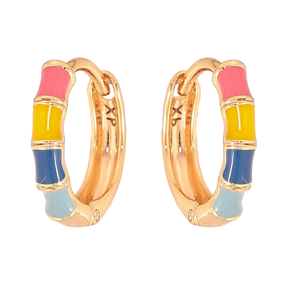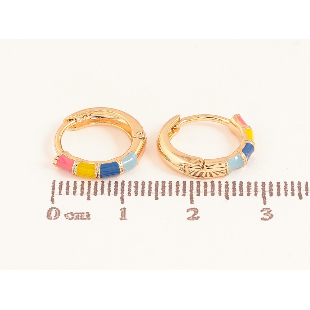 Серьги Xuping цвет Позолота 18К колечки "Узор с разноцветной эмалью"