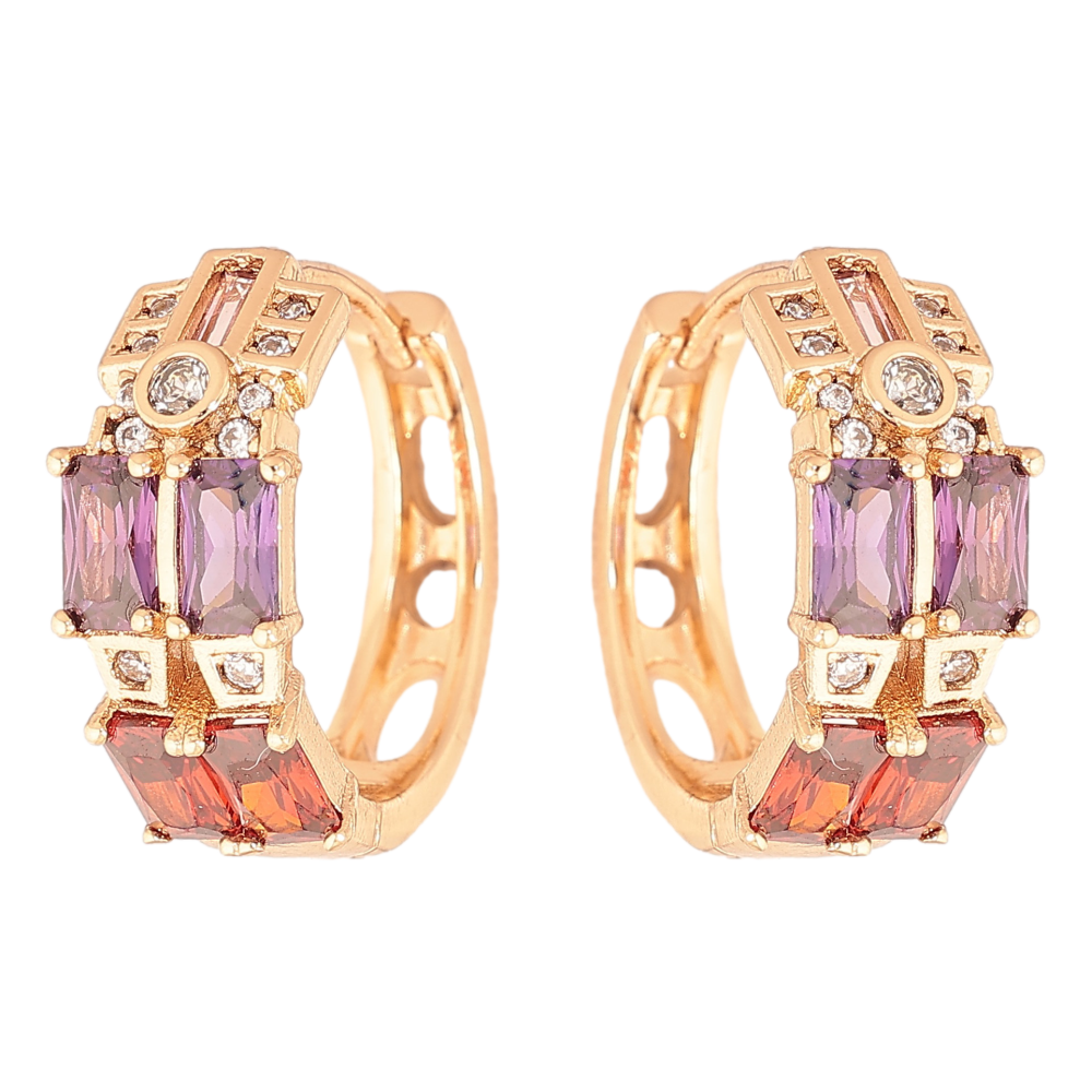 Серьги Xuping цвет Позолота 18К колечки "Узор с разноцветными кристаллами"
