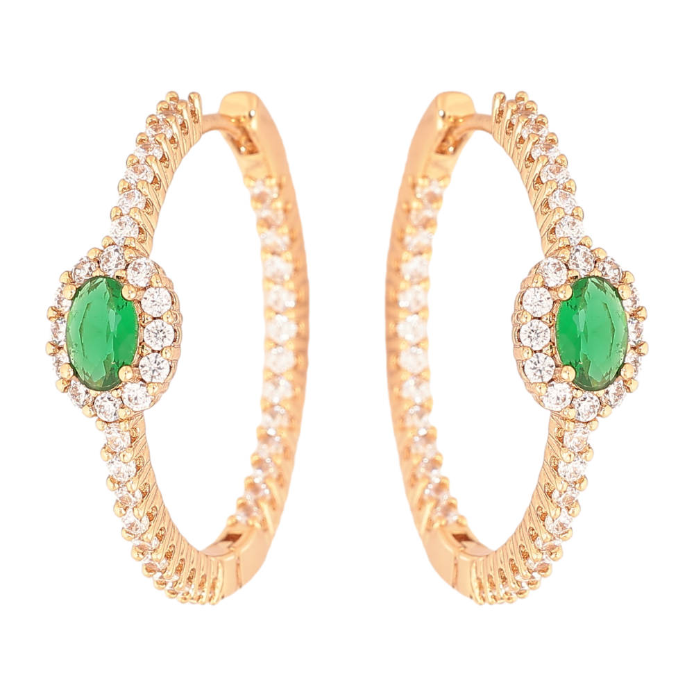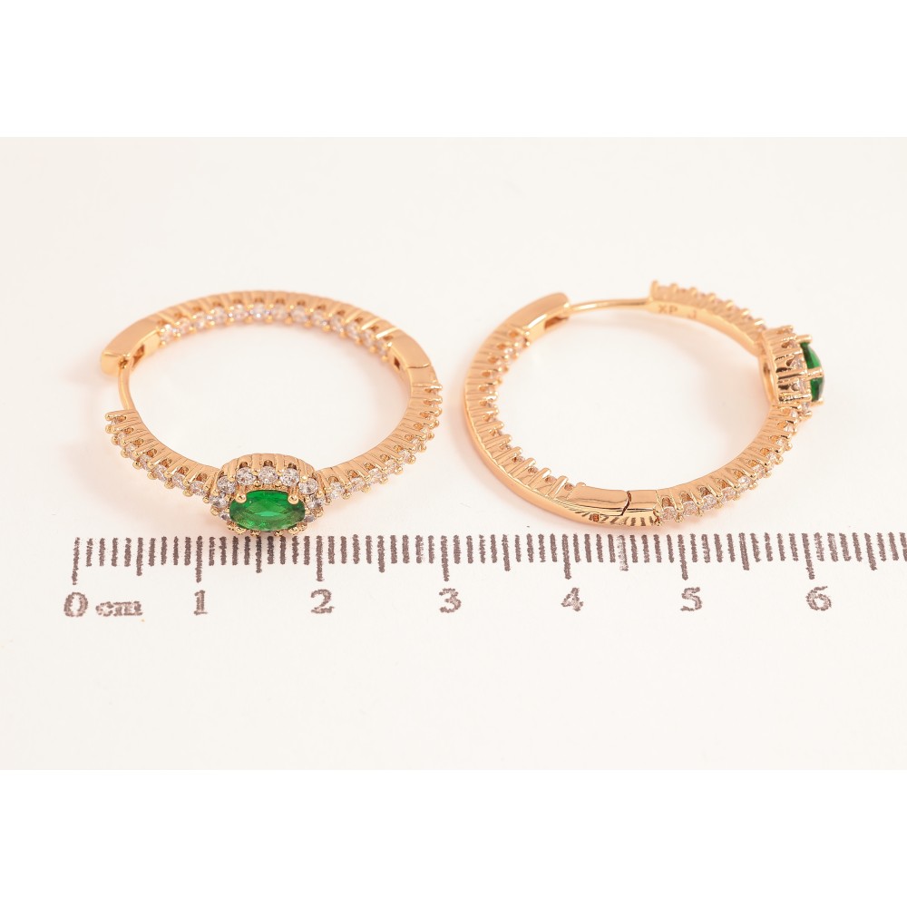 Серьги Xuping цвет Позолота 18К колечки "Узор с зелеными кристаллами"