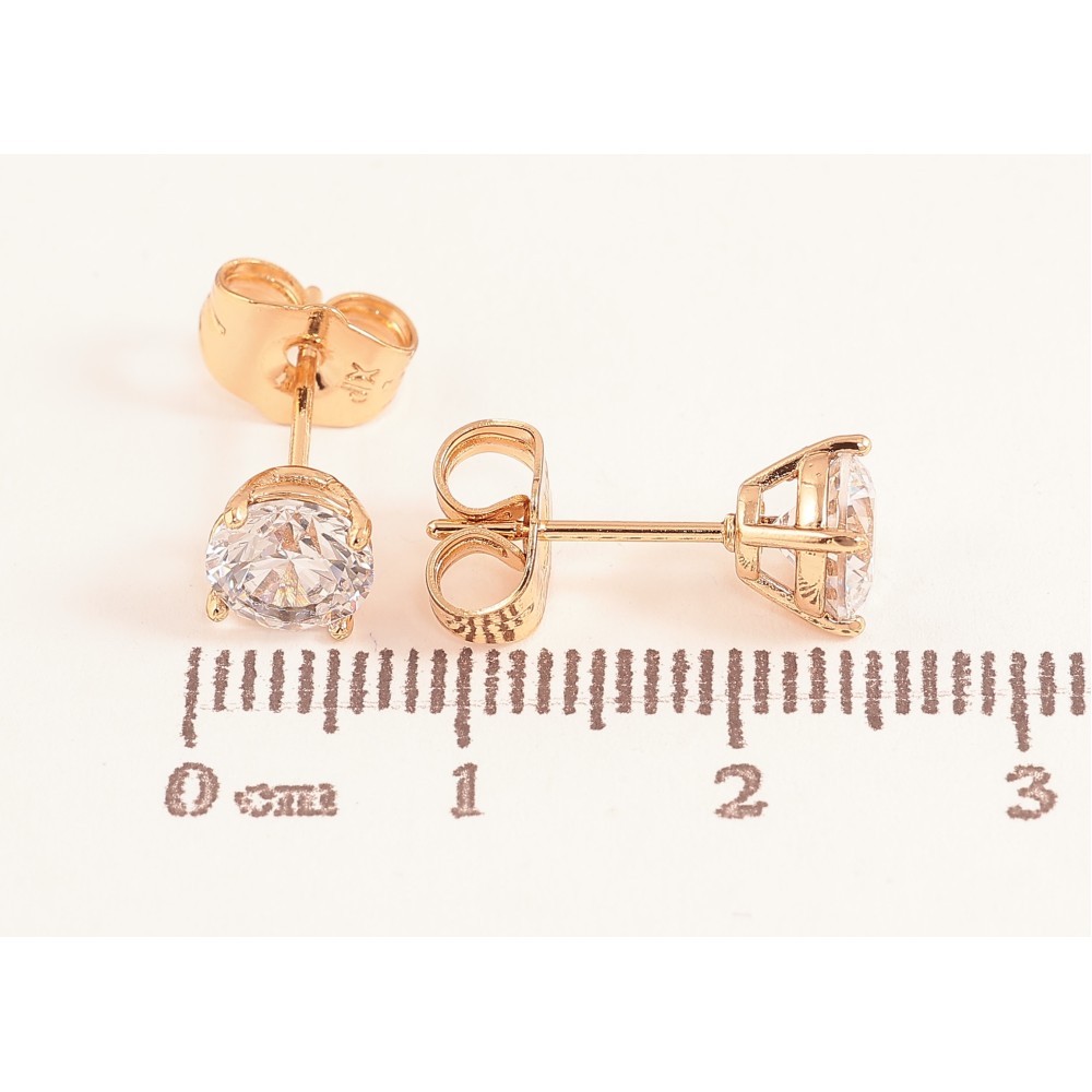 Серьги Xuping цвет Позолота 18К пусеты "Кристаллы в 4-х крапановой оправе" ø 6мм