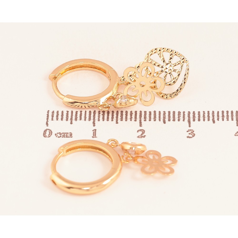 Серьги Xuping цвет Позолота 18К подвески на колечках "Ассиметричные подвески"