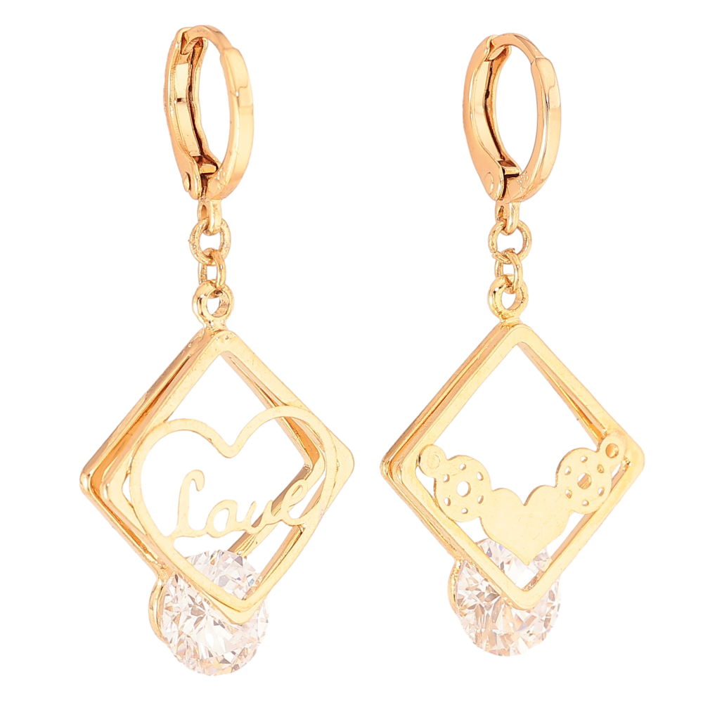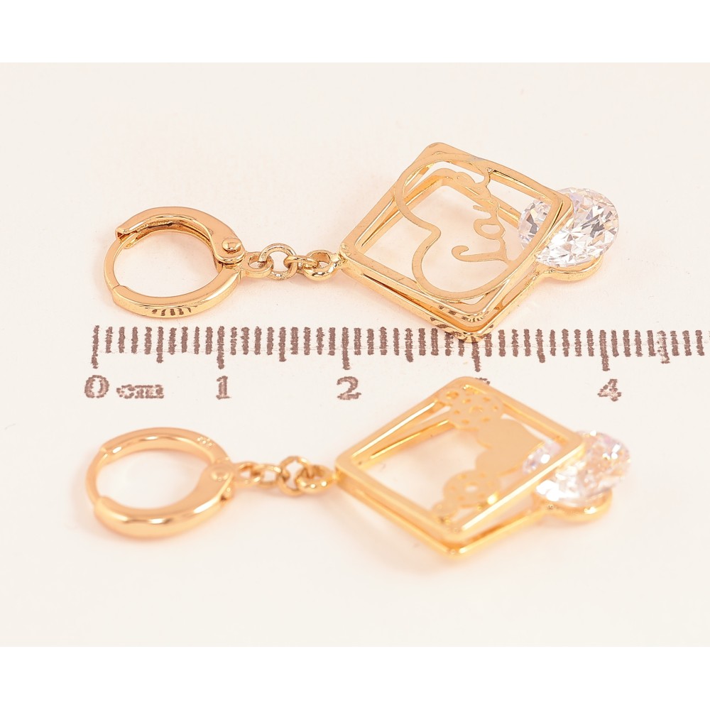 Серьги Xuping цвет Позолота 18К подвески на колечках "Ассиметричный узор с кристаллами"