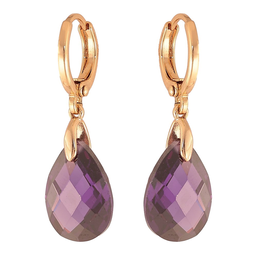 Серьги Xuping цвет Позолота 18К подвески на колечках "Сиреневые кристальные капельки"