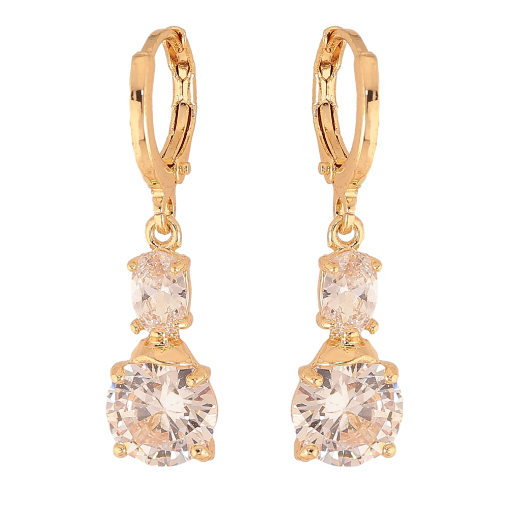 Серьги Xuping цвет Позолота 18К подвески на колечках "Два кристалла"