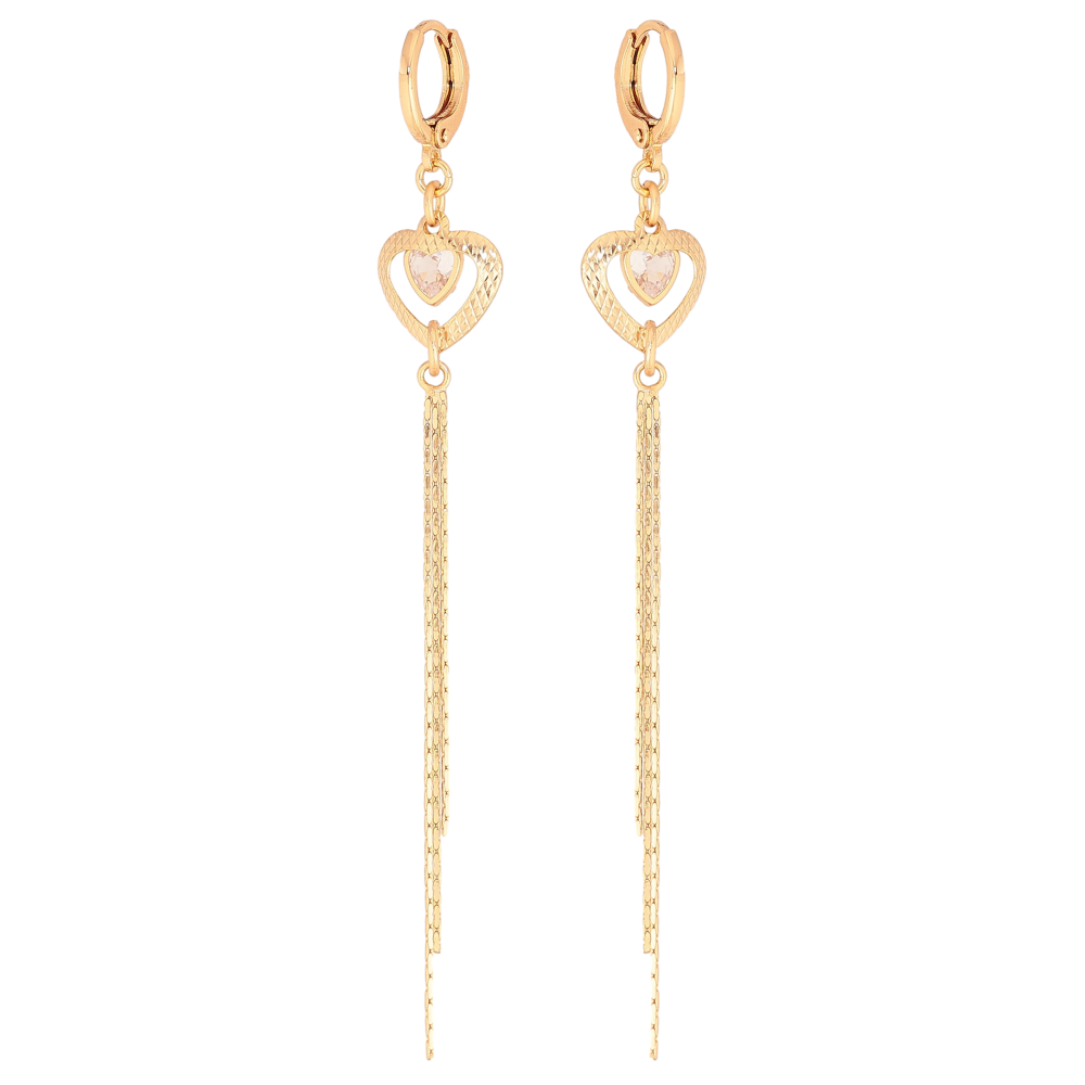 Серьги Xuping цвет Позолота 18К подвески на колечках "Сердечки с кристаллами"