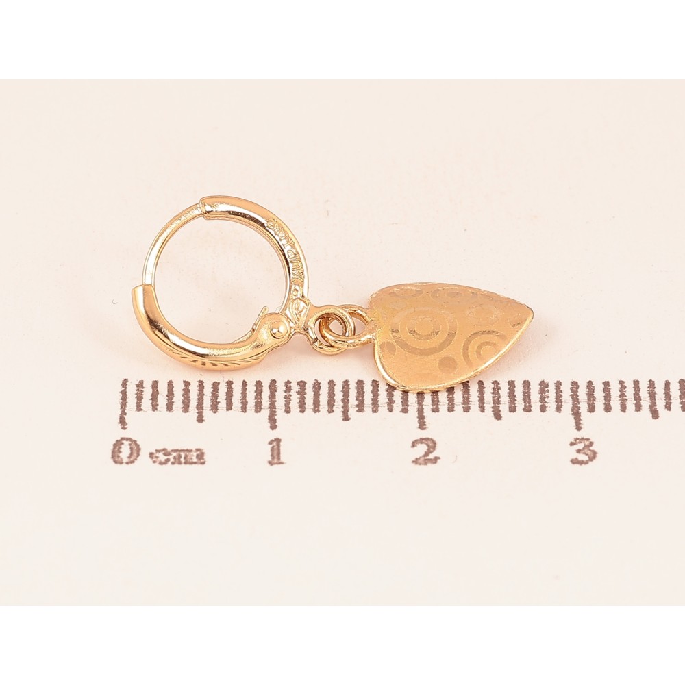 Серьги Xuping цвет Позолота 18К подвески на колечках "Сердечки с узором напылением"