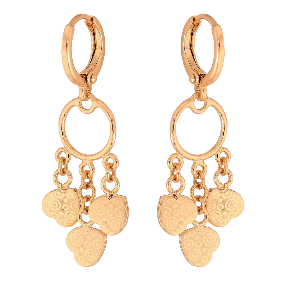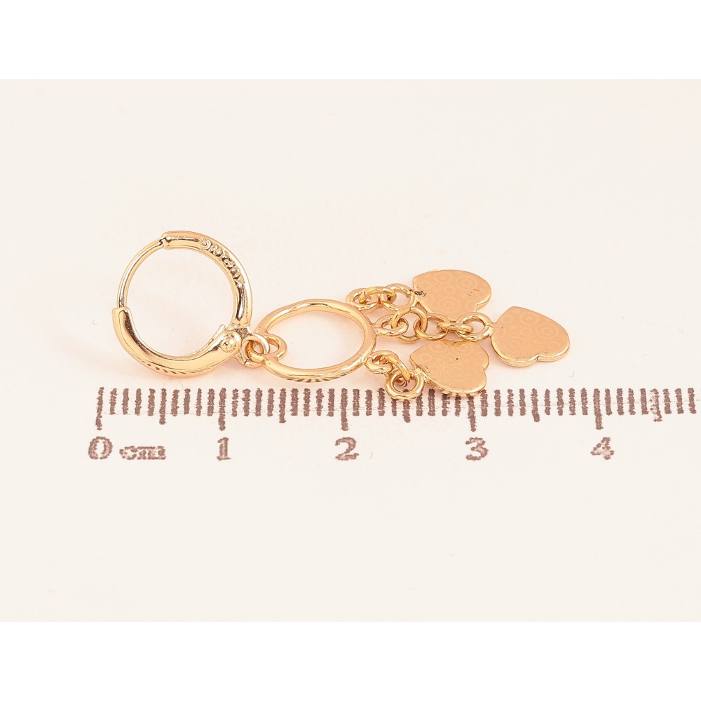 Серьги Xuping цвет Позолота 18К подвески на колечках "Сердечки с узором напылением"