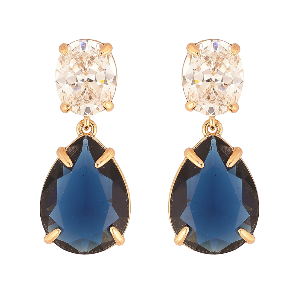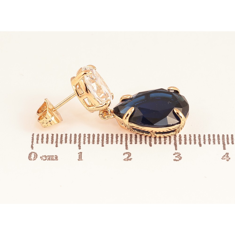 Серьги Xuping цвет Позолота 18К пусеты "Подвески с бело-синих кристаллов"