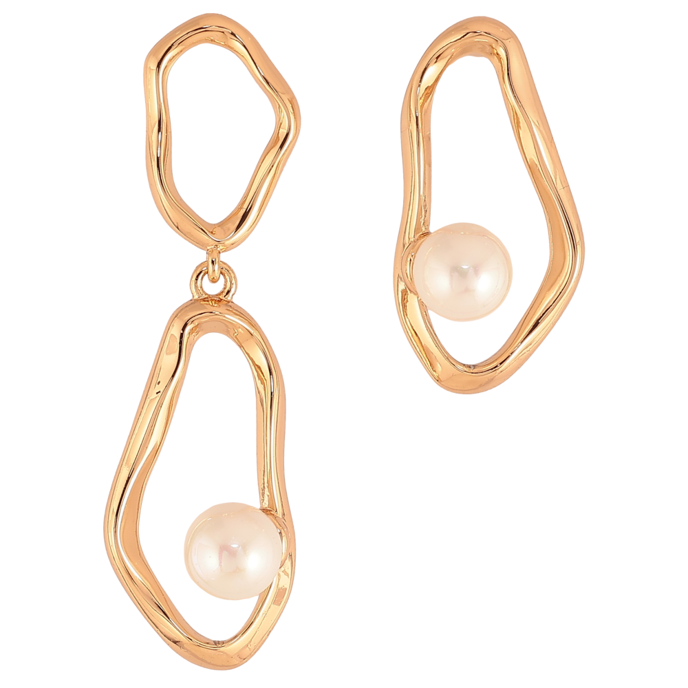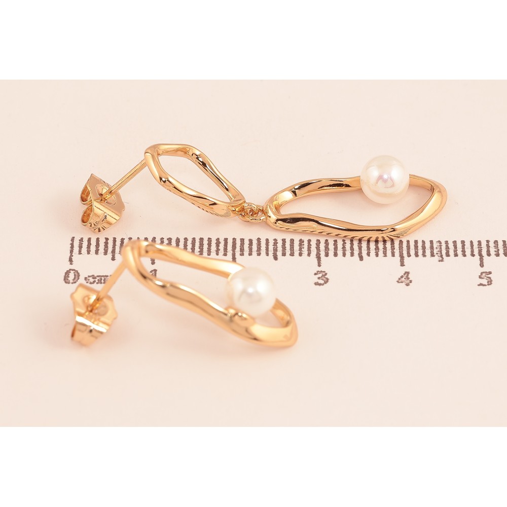 Серьги Xuping цвет Позолота 18К пусеты "Ассиметричные подвески с жемчужинами"