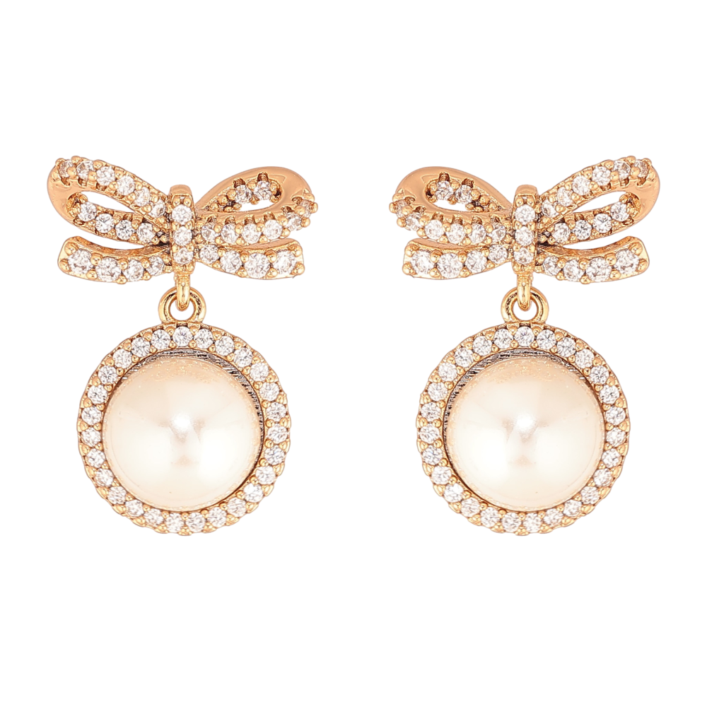 Серьги Xuping цвет Позолота 18К пусеты "Банты с жемчужными подвесками"