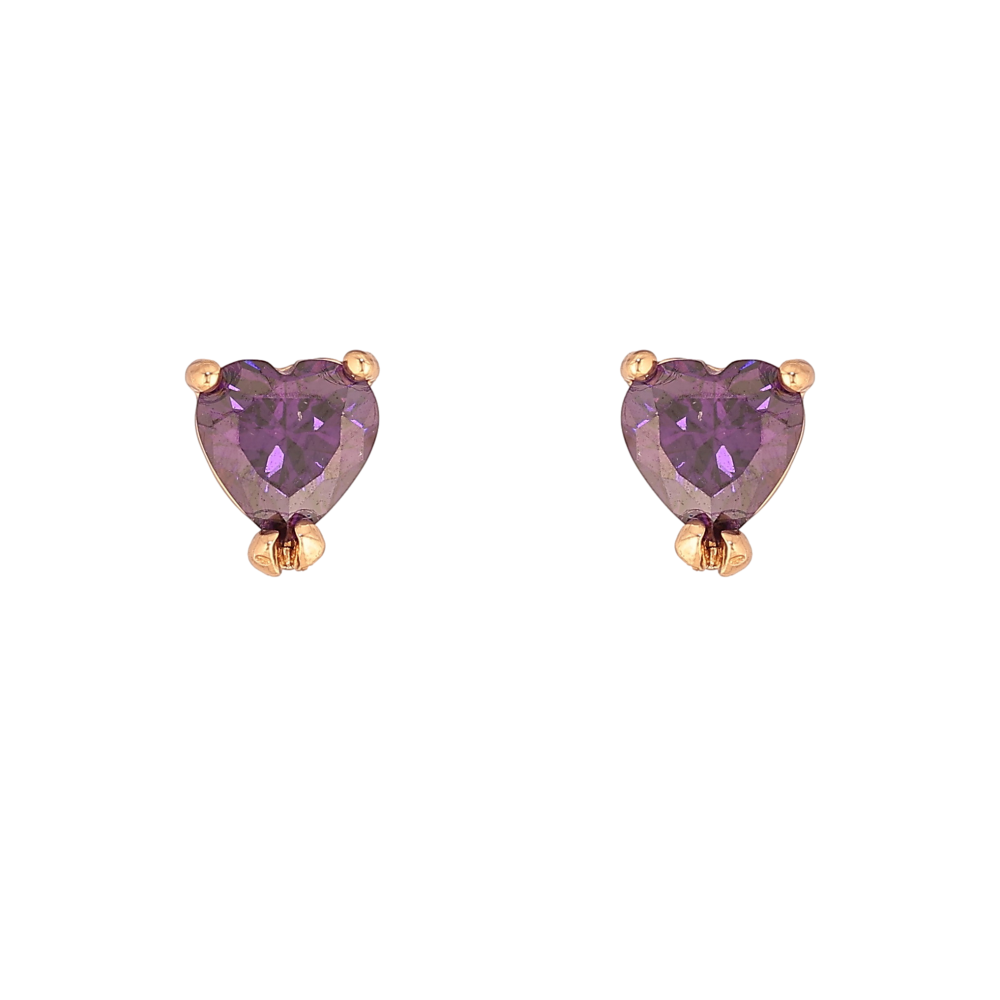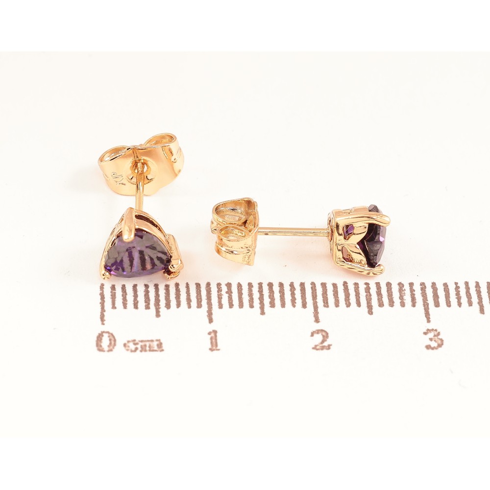 Серьги Xuping цвет Позолота 18К пусеты "Сиреневые кристальные сердечки"