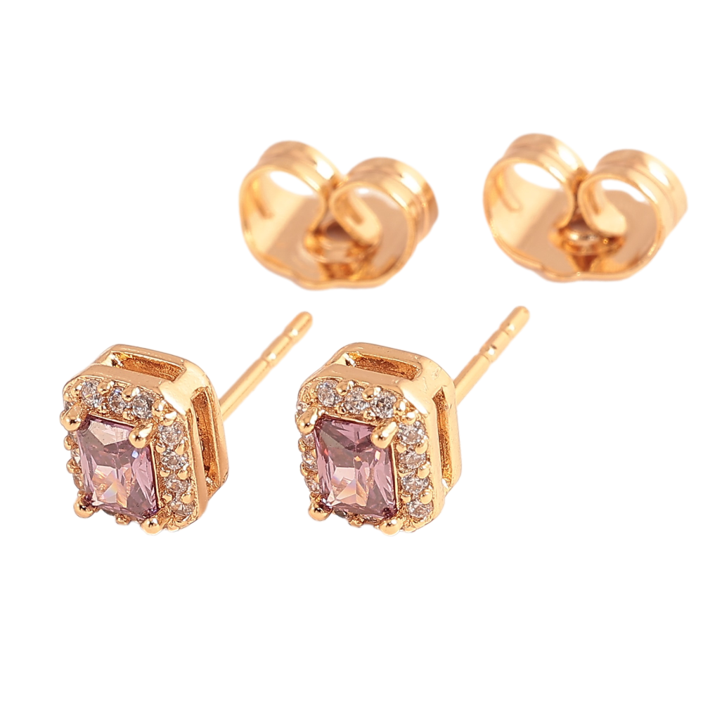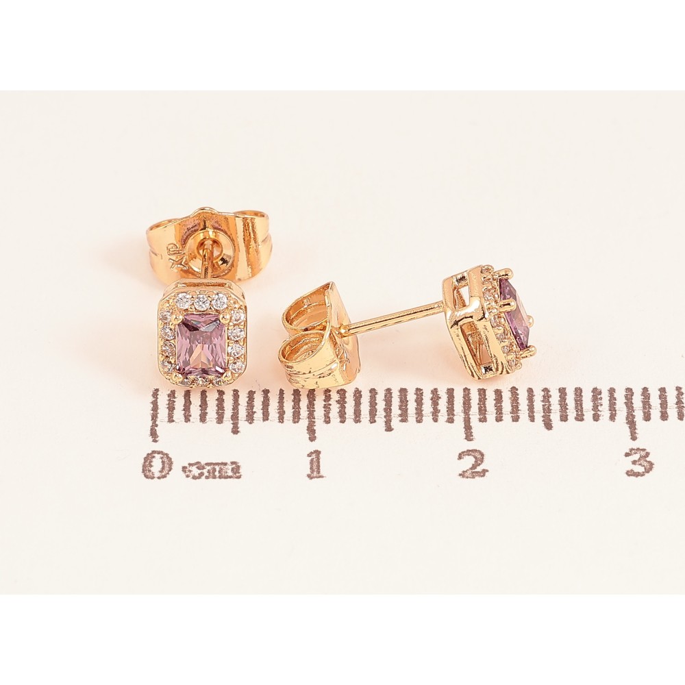 Серьги Xuping цвет Позолота 18К пусеты "Сиреневые кристаллы в обрамлении"