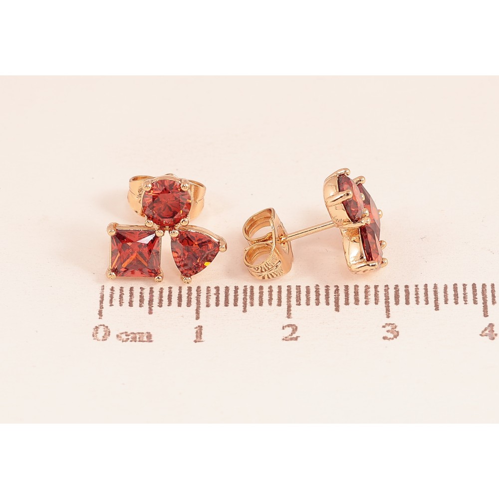 Серьги Xuping цвет Позолота 18К пусеты "Красные кристаллы" фото №1