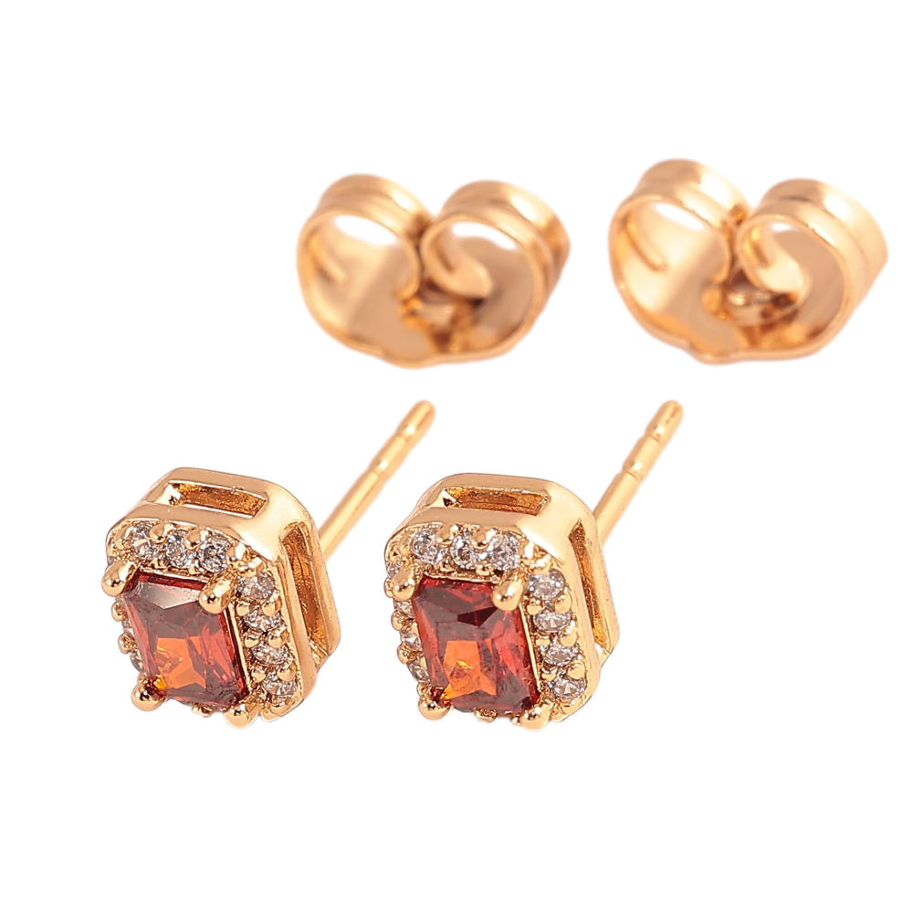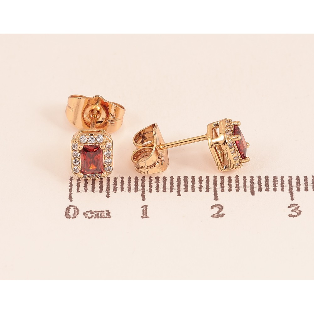 Серьги Xuping цвет Позолота 18К пусеты "Красные кристаллы в обрамлении"