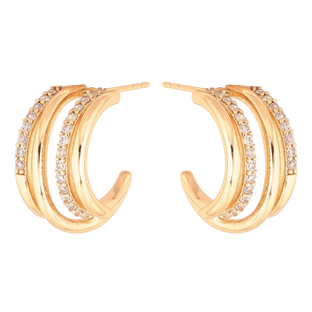 Серьги Xuping цвет Позолота 18К пусеты "Дужки с дорожками кристаллов"