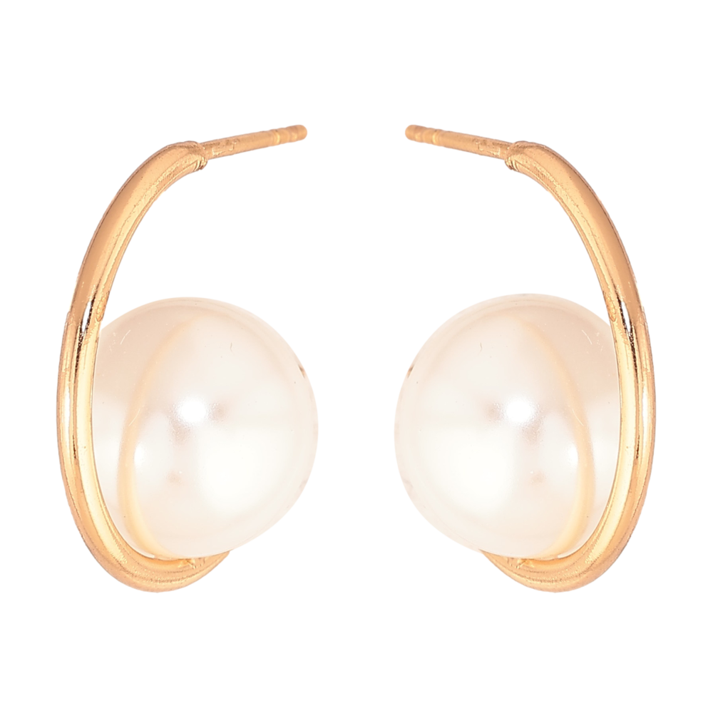 Серьги Xuping цвет Позолота 18К пусеты "Дужки с жемчужинами" фото №1