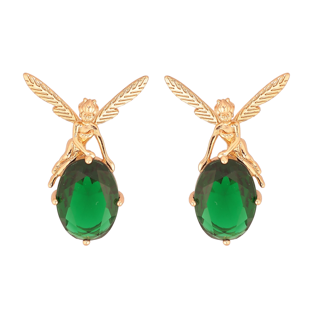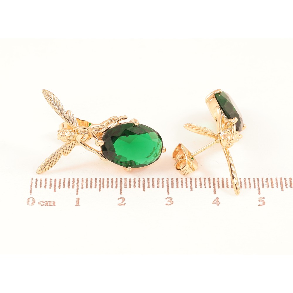 Серьги Xuping цвет Позолота 18К пусеты "Феи на зеленых кристаллах"
