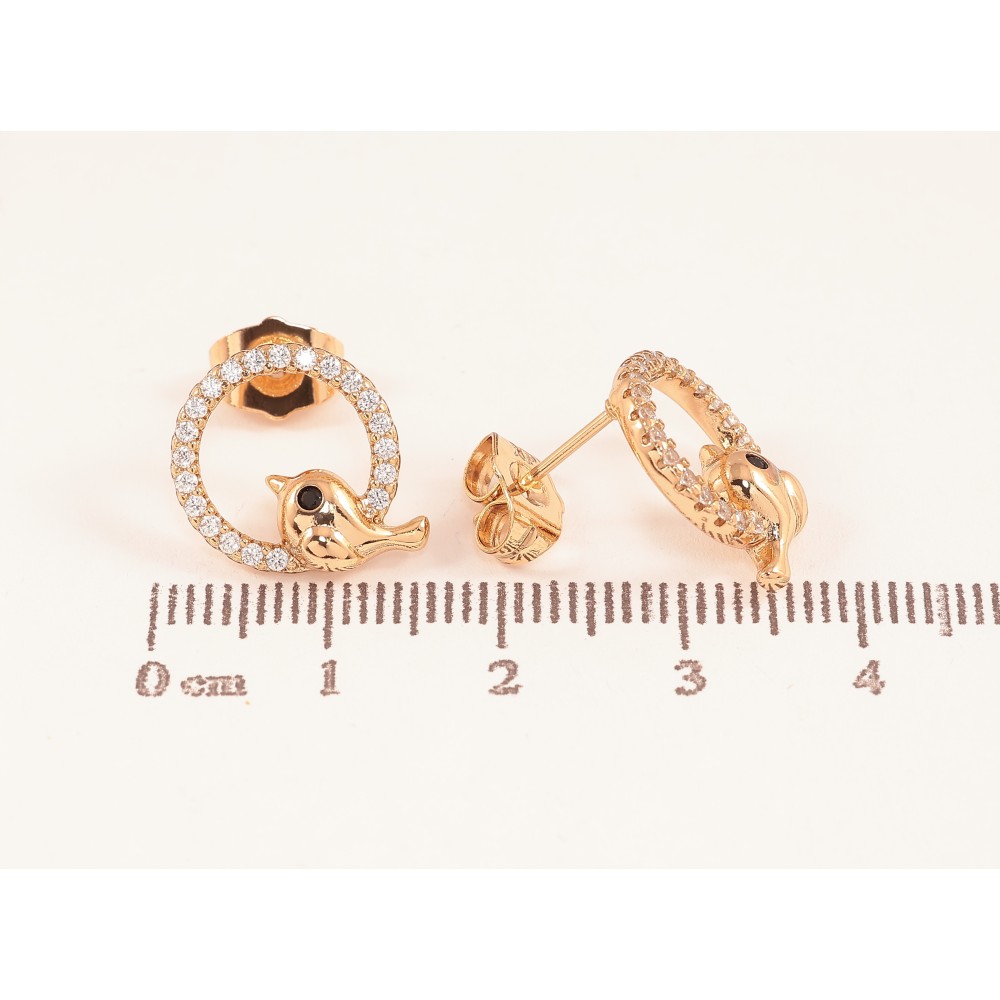 Серьги Xuping цвет Позолота 18К пусеты "Колечки с птичками"