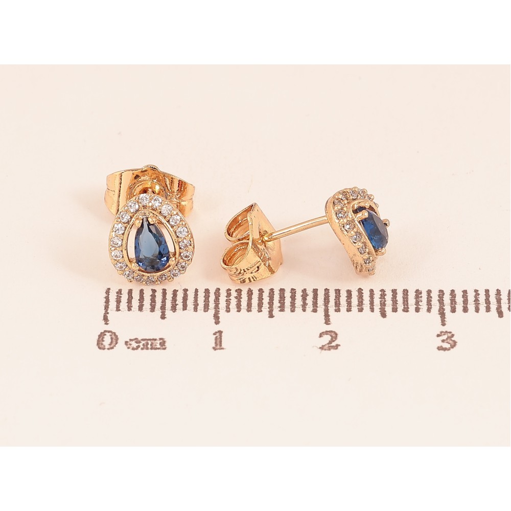 Серьги Xuping цвет Позолота 18К пусеты "Капельки с синими кристаллами"