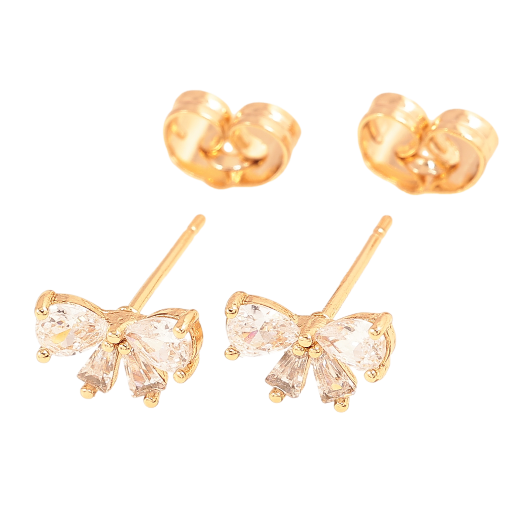 Серьги Xuping цвет Позолота 18К пусеты "Кристальные банты" фото №1