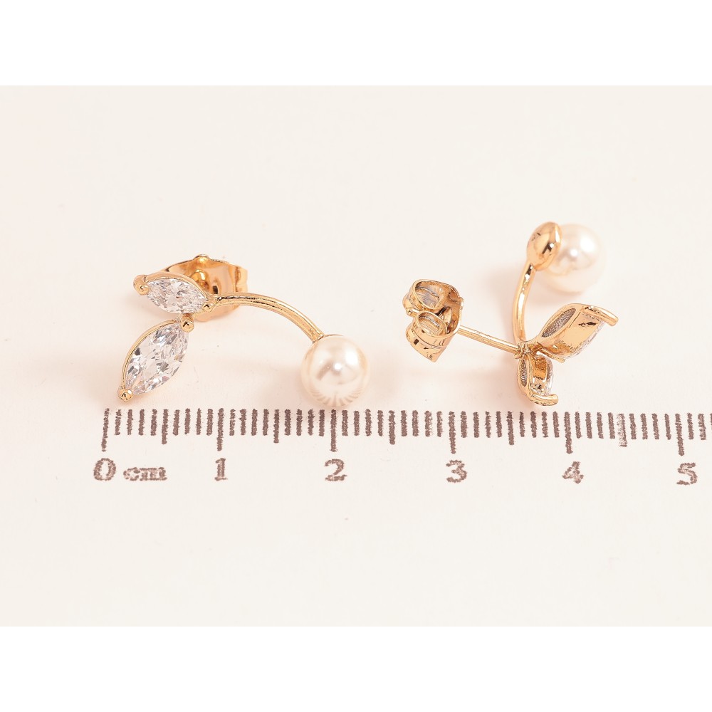 Серьги Xuping цвет Позолота 18К пусеты "Кристальные веточки с жемчужинами"