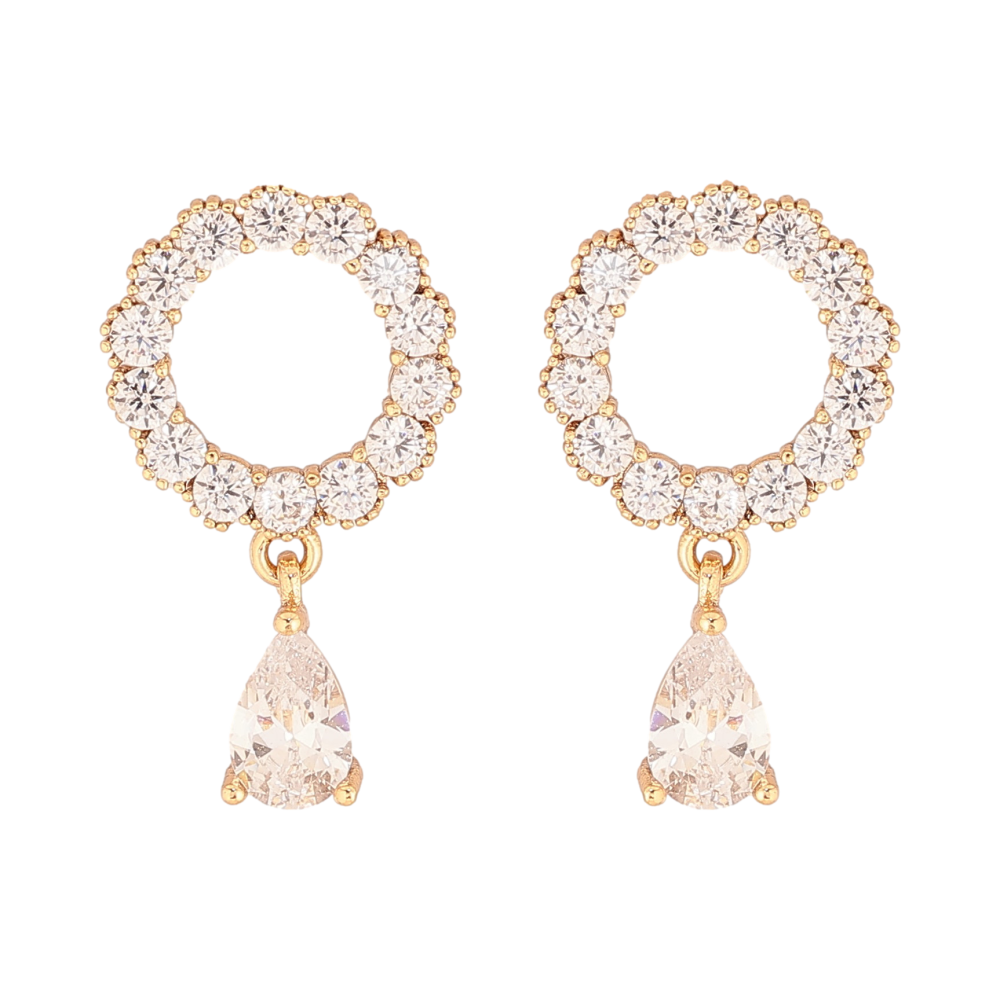 Серьги Xuping цвет Позолота 18К пусеты "Кристальные колечки с капельками"