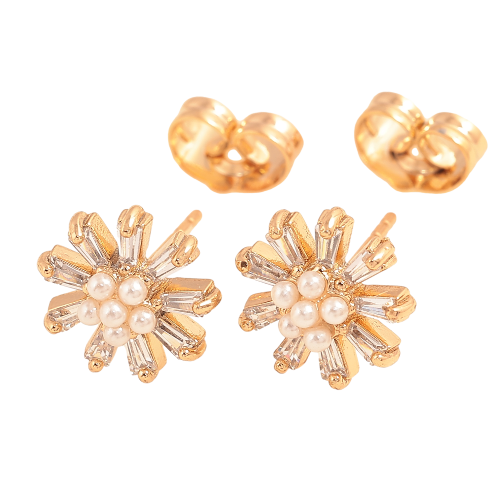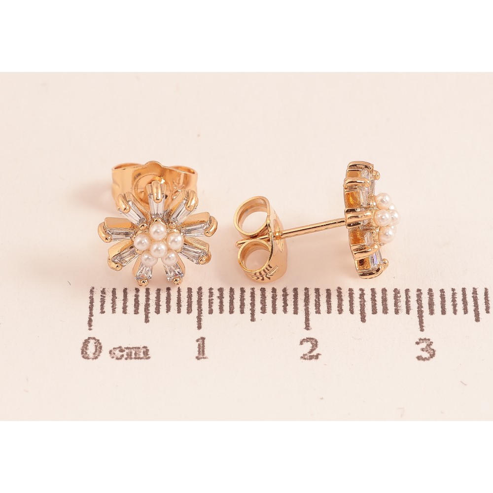 Серьги Xuping цвет Позолота 18К пусеты "Кристальные цветочки с жемчужинами"