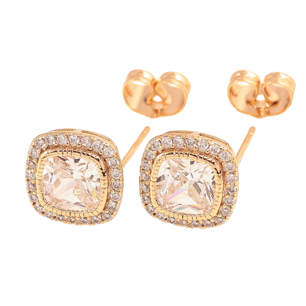 Серьги Xuping цвет Позолота 18К пусеты "Кристаллы в обрамлении"