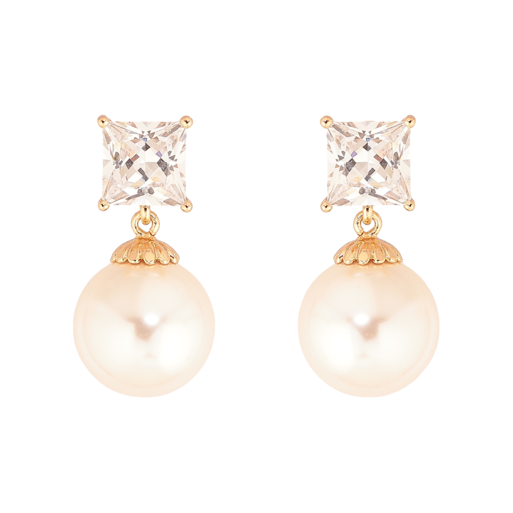 Серьги Xuping цвет Позолота 18К пусеты "Кристаллы с жемчужными подвесками"