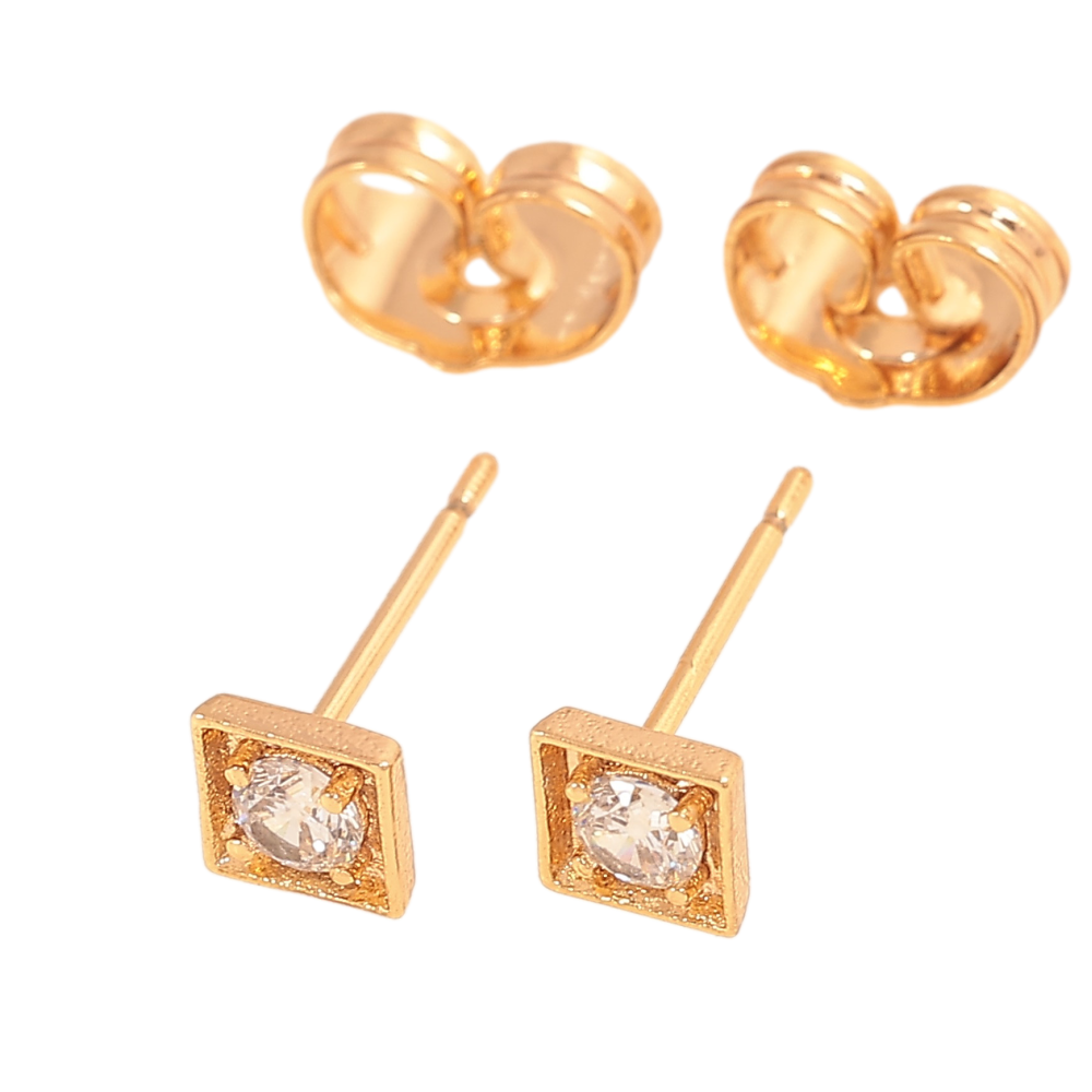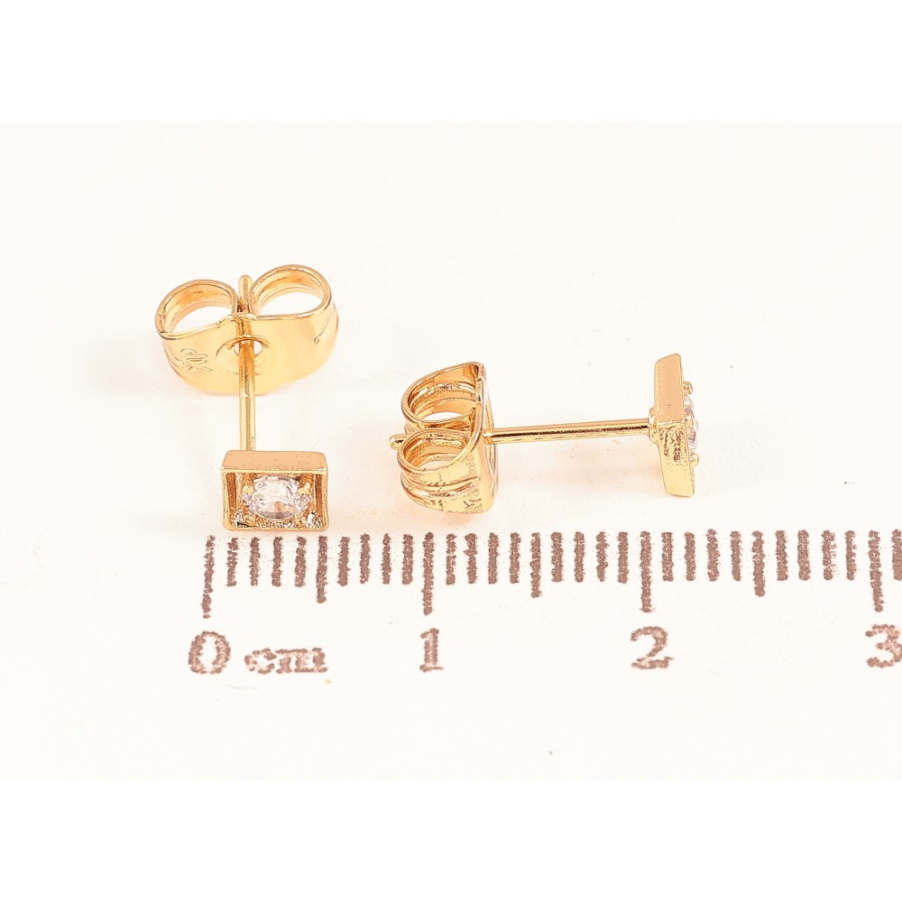 Серьги Xuping цвет Позолота 18К пусеты "Квадраты с кристаллами" 5х5мм