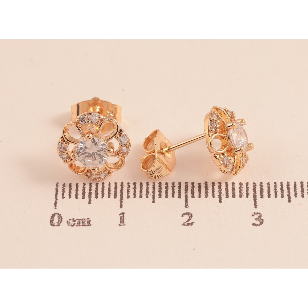 Серьги Xuping цвет Позолота 18К пусеты "Цветочки с кристаллами"