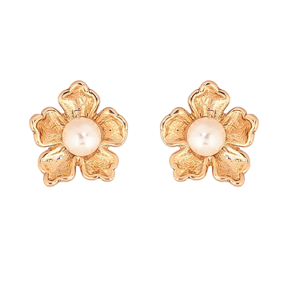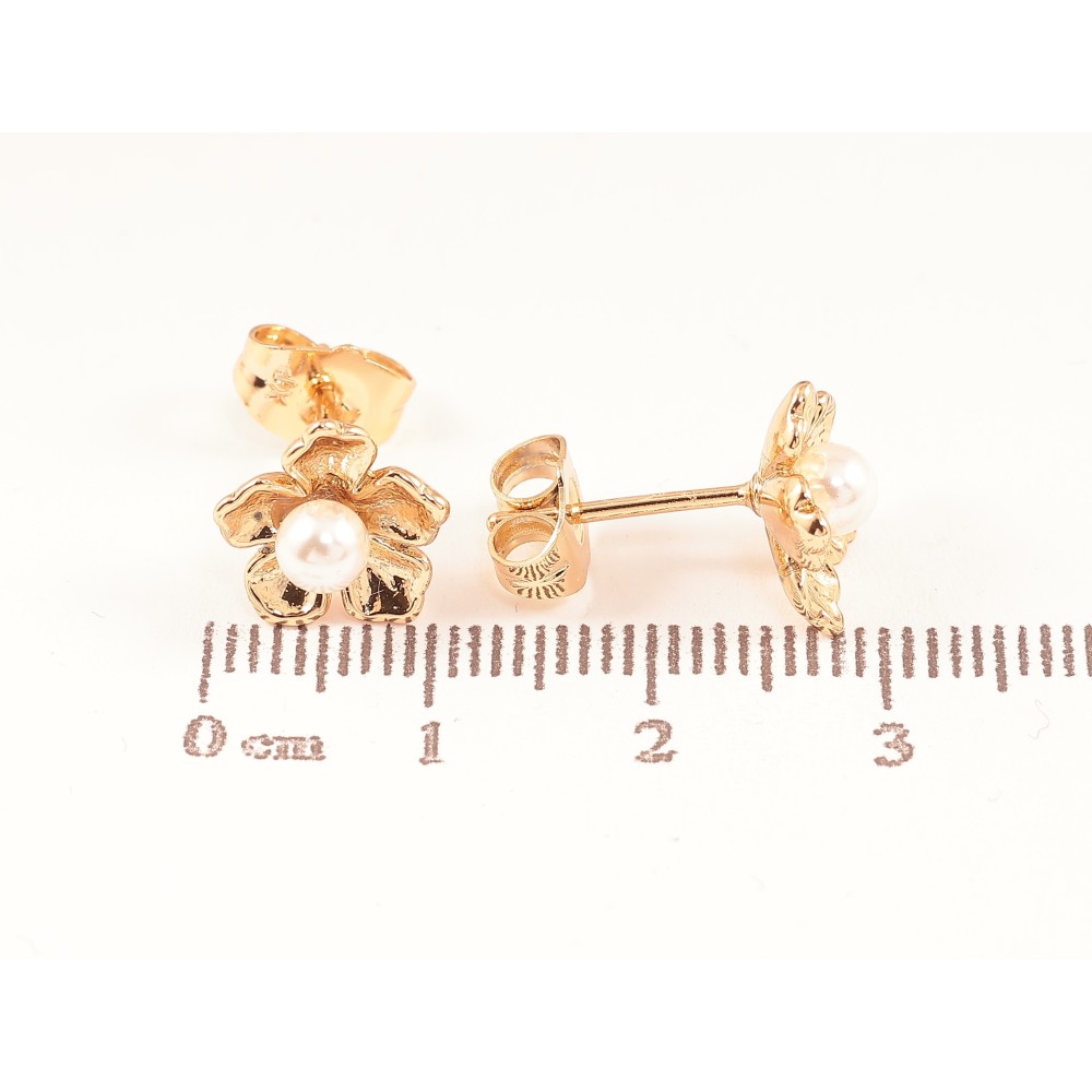 HIT Серьги Xuping цвет Позолота 18К пусеты "Цветочки с жемчужинами" фото №1