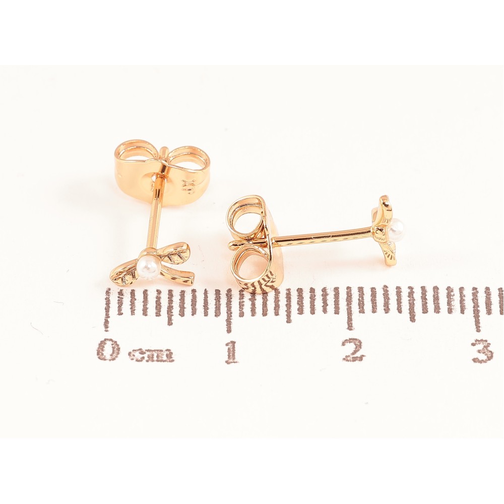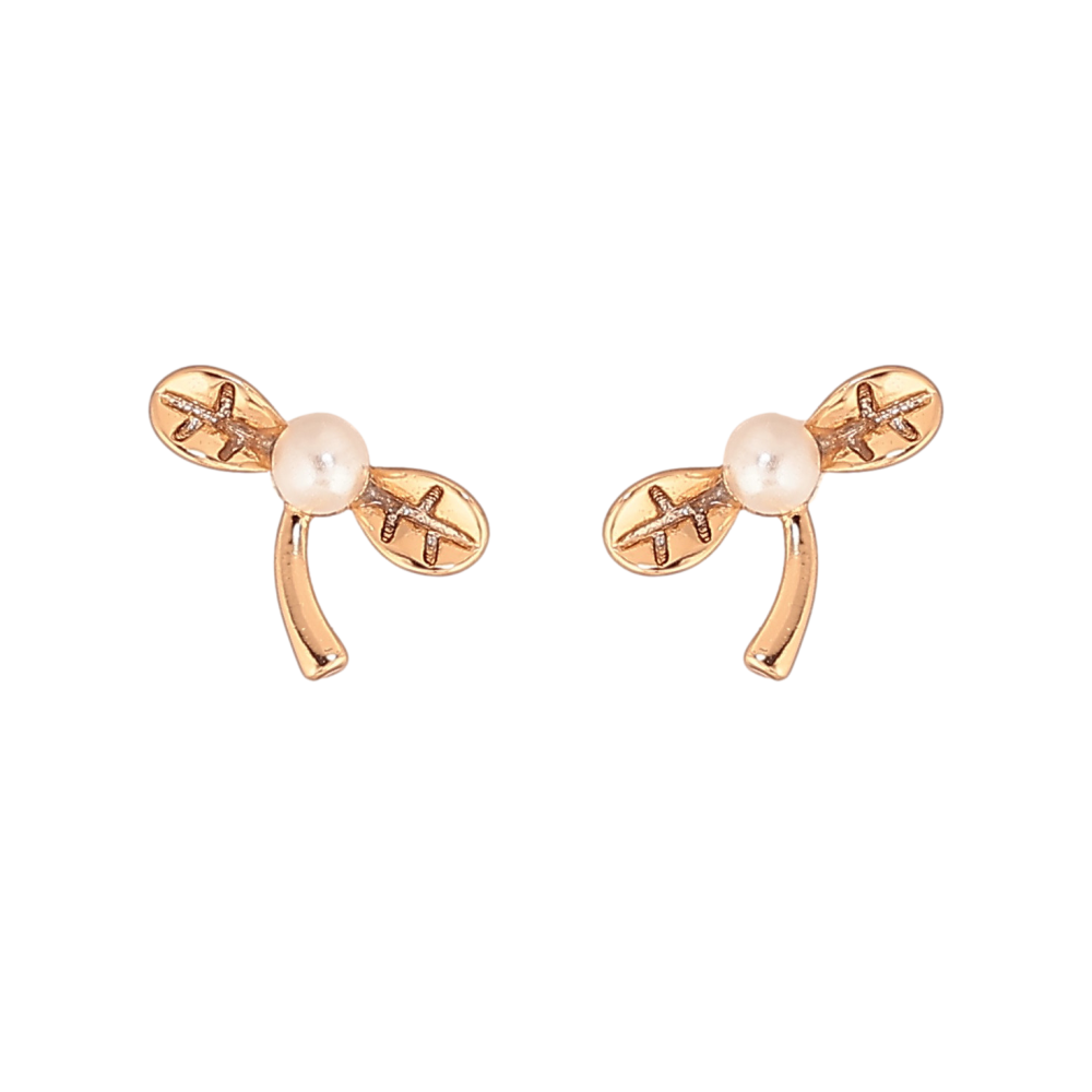 Серьги Xuping цвет Позолота 18К пусеты "Листики с жемчужинами"
